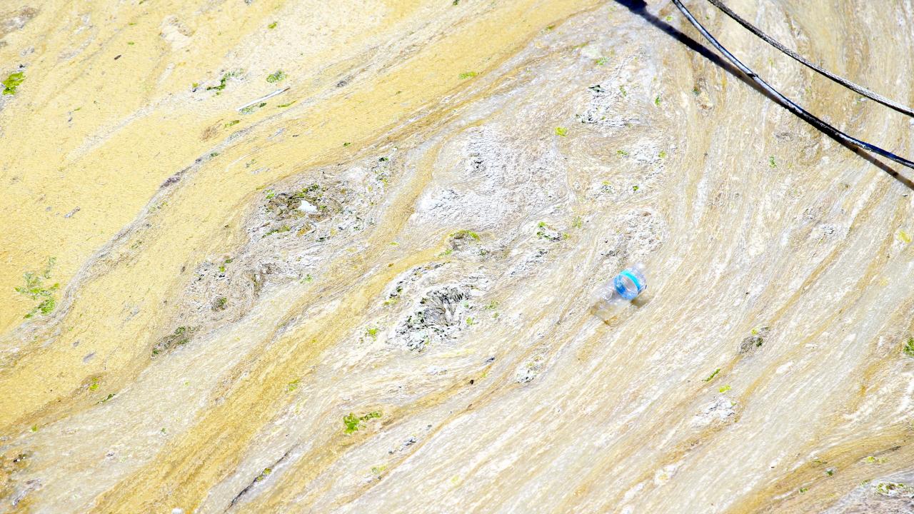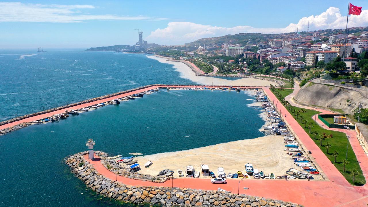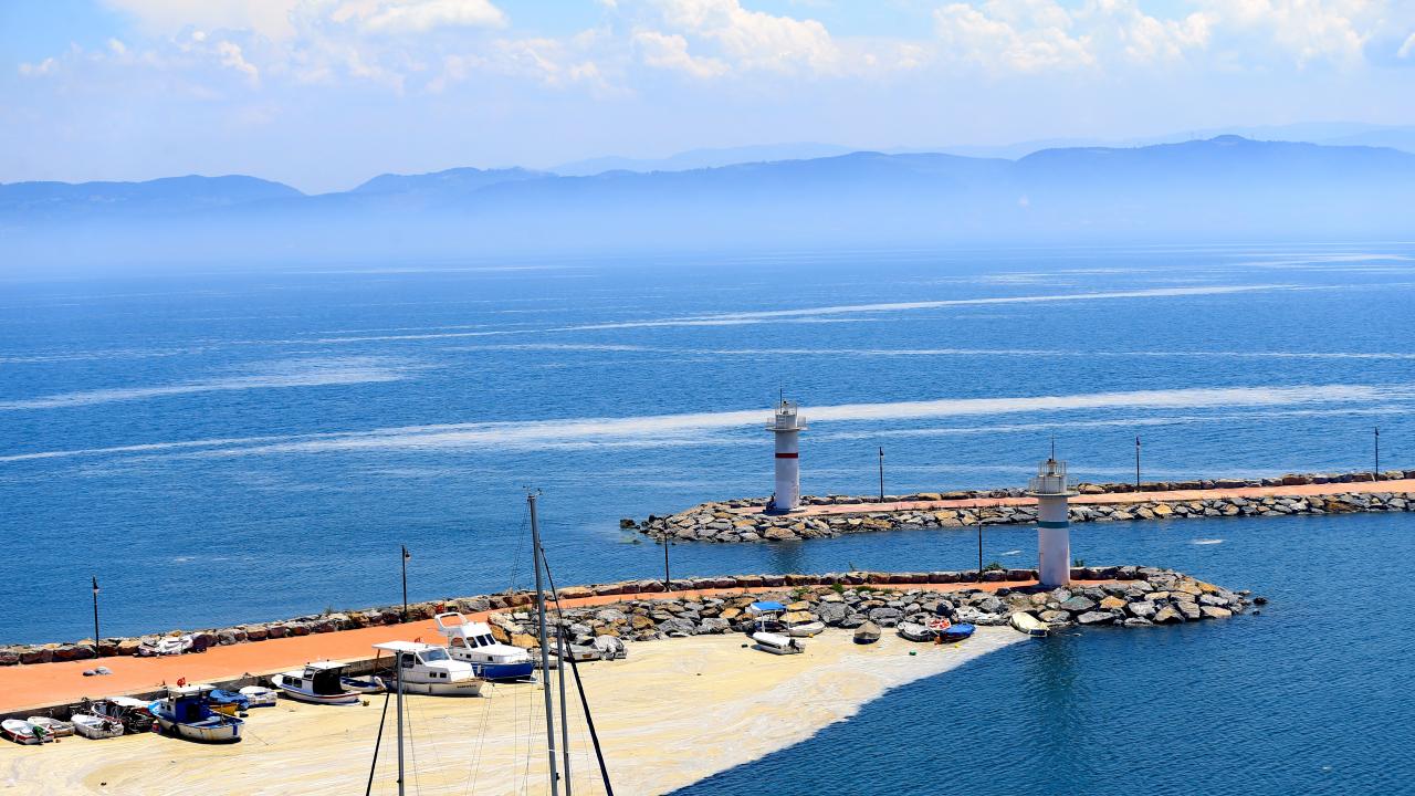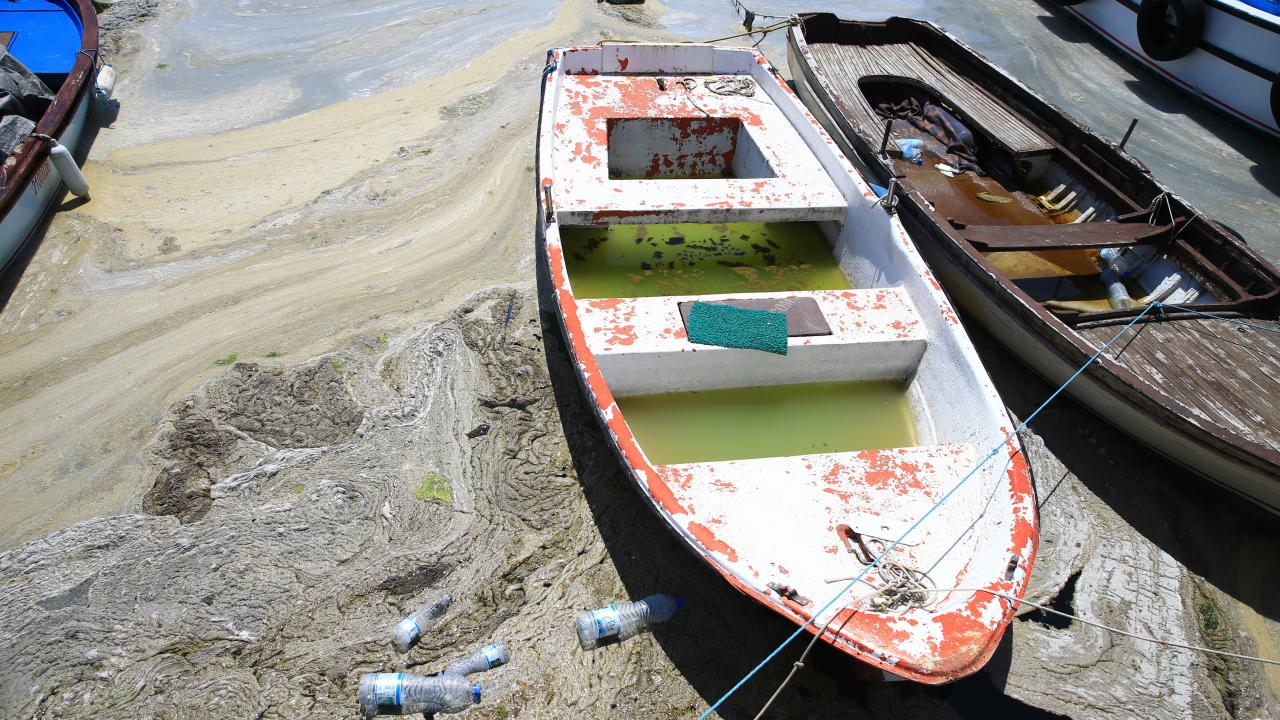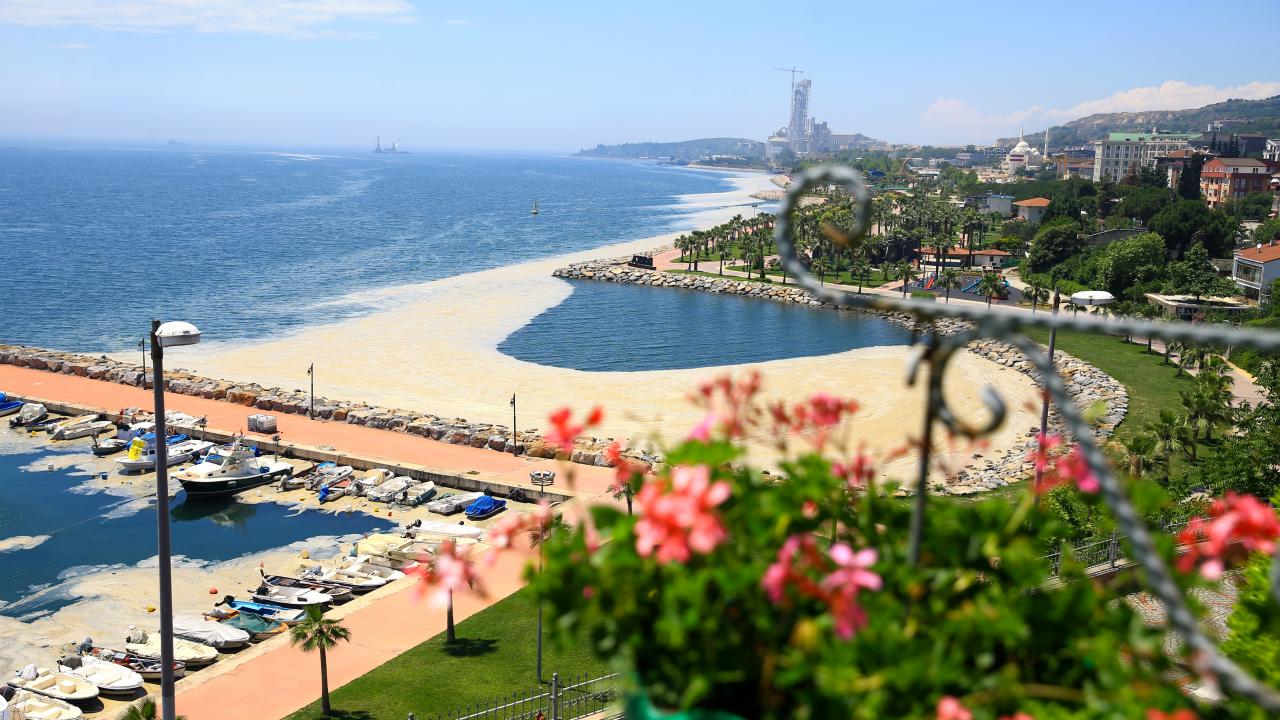Darıca sahillerinde ince tabaka olarak görülen müsilajın bir kısmı, rüzgarın da etkisiyle açık denize doğru dağıldı.