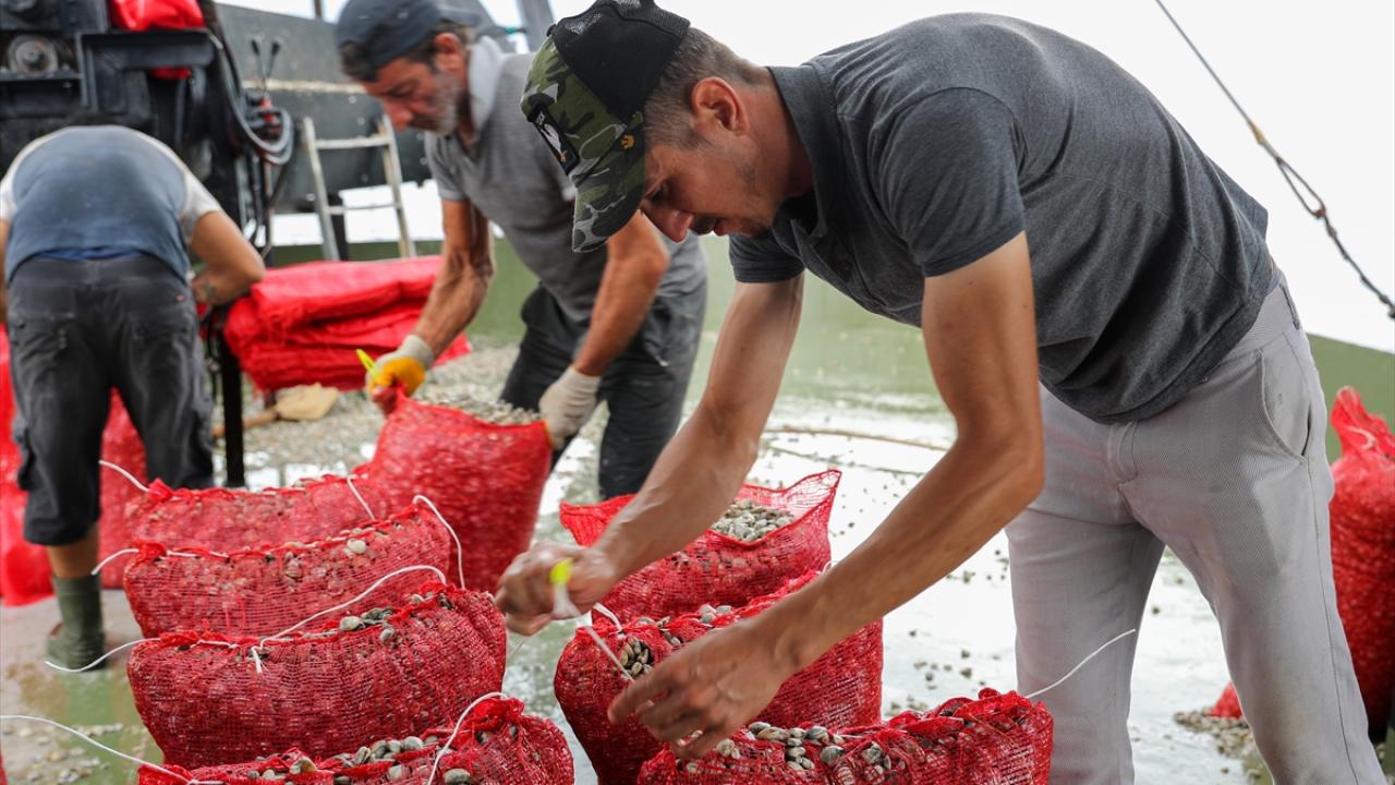 Kum midyesi avcılığının hava şartlarından etkilendiğini dile getiren Kaya, denizden tekne başına günlük 10 ton kum midyesi çıkarıldığını kaydetti.