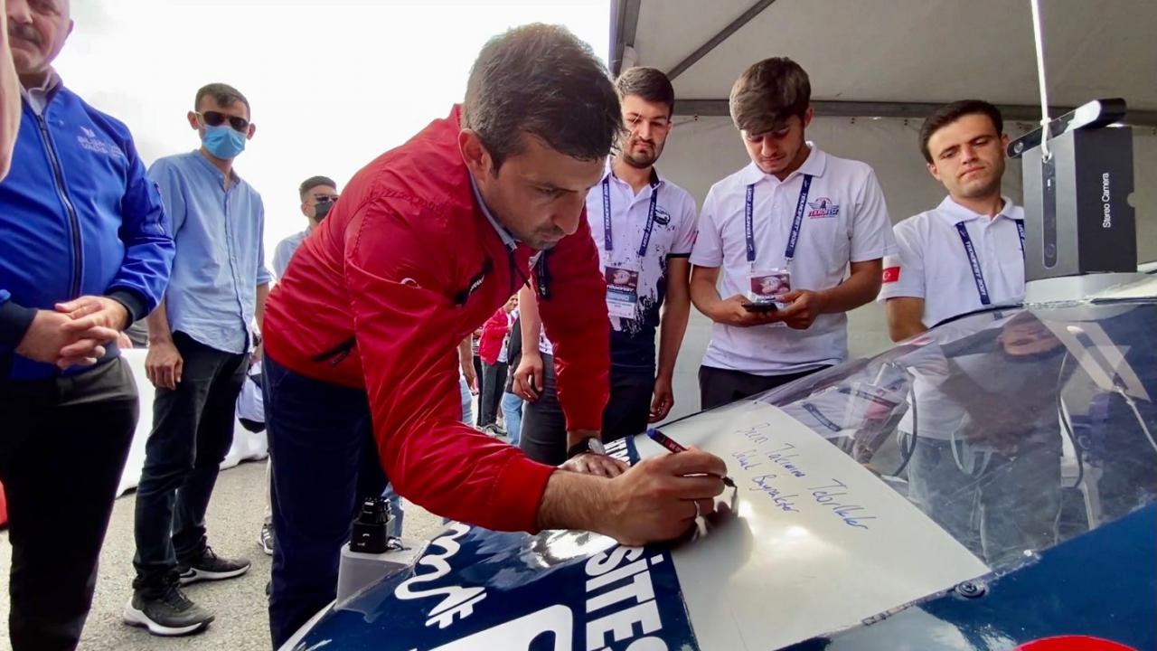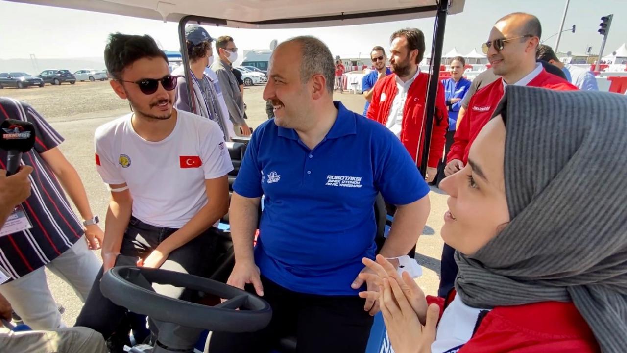 Üniversite öğrencileriyle çalışmalarına ilişkin sohbet eden Bakan Varank, geliştirilen iki otonom aracı kullandı, takım formalarını imzaladı. Bakan Varank, daha sonra yarışın startını verdi.