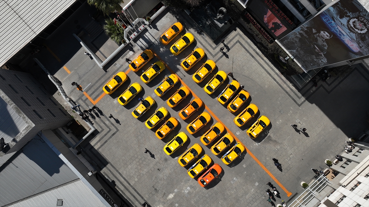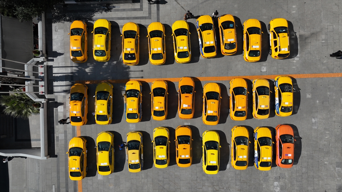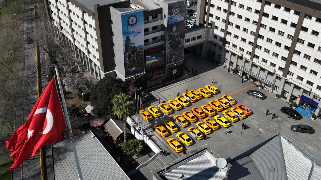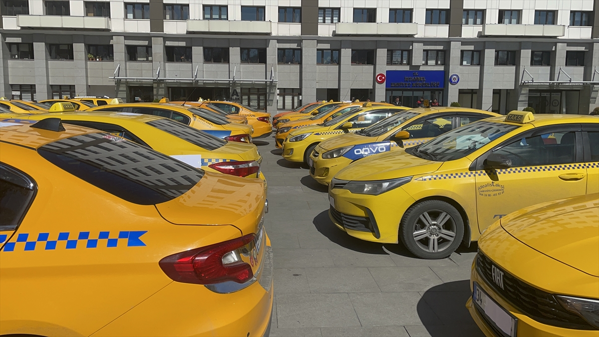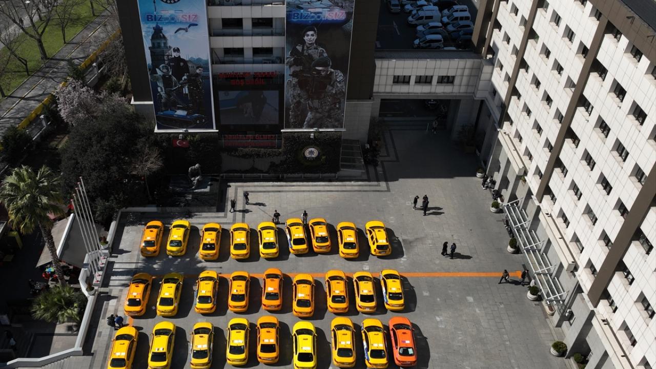 El konulan taksilerin bir kısmı, İstanbul Emniyet Müdürlüğünün bahçesinde sergilendi.