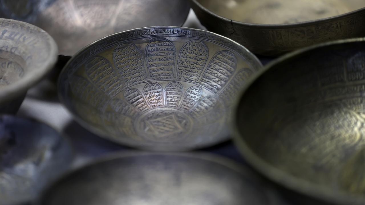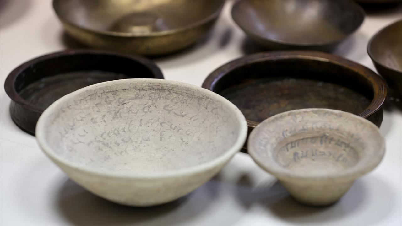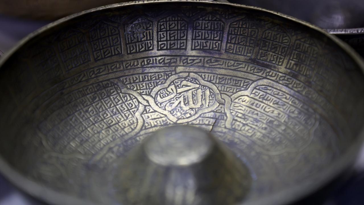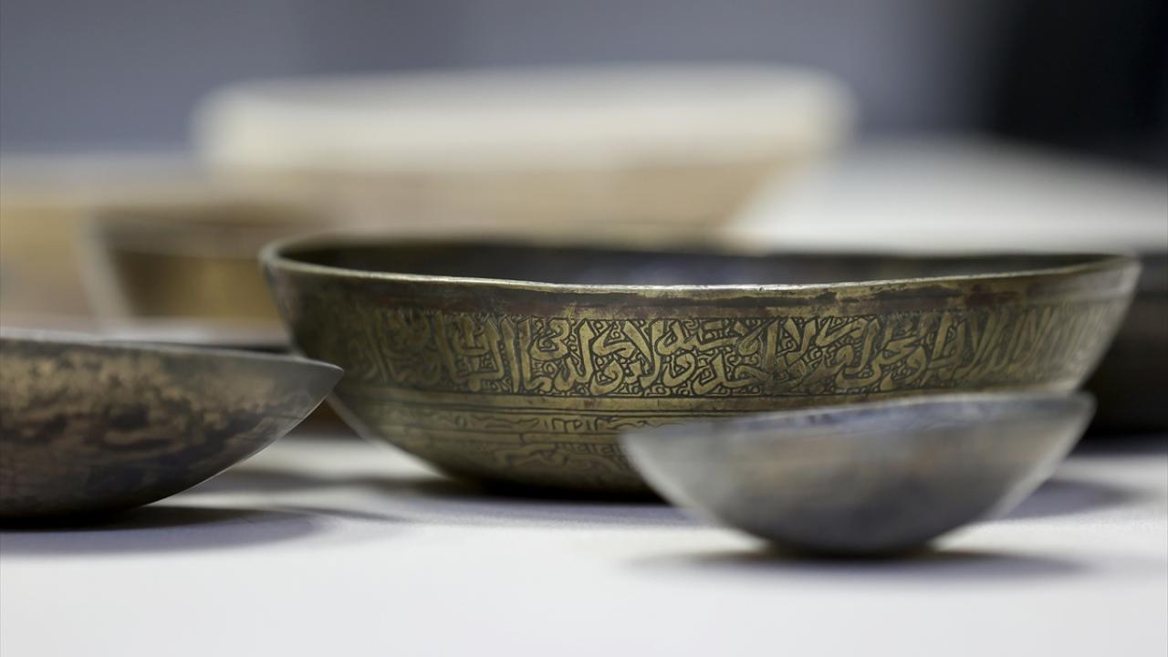 "Koleksiyonumuzda 12. yüzyıla tarihlediğimiz Selçuklu dönemi, literatürde kına tasları diye geçen taslar var. Bunlardaki yazıları okuttuğumuzda `Kullanan kişiye saadet, bolluk, şifa getirsin` anlamında ibareler gördük. Sığ ve tabanları düz olan, bronzdan üretilmiş bu tasların ritüelik özelliği dışında bir kullanımı olmayacağı ve şifa amacıyla üretildiği sonucuna vardık. Daha sonra 14 ve 15. yüzyıla tarihlenen, tam tespit edemediğim ama Memluk döneminde olabileceğini düşündüğümüz daha oval formlu taslarla karşılaşıyoruz. Bunlardaki yazıları okuduğumuzda da artık çok daha net şekilde tıbbi amaçla üretildikleri görülüyor. Akrep sokmasına, köpek ısırmasına, kuduza vesaire... Sonra çok yaygın bir şekilde Osmanlı döneminde ve İslam coğrafyasında geçerli göbekli ya da düz tabanlı İslami şifa taslarını görüyoruz."