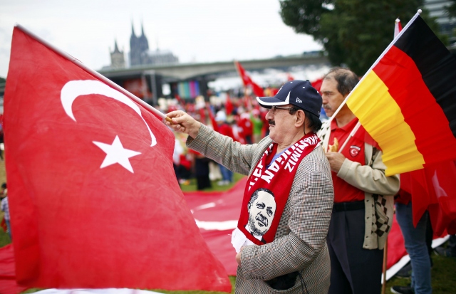 Avrupa'nın çeşitli ülkelerinde yaşayan Türkler, Darbeye Karşı Demokrasi Mitingi için Almanya'nın Köln kentinde bir araya geldi.