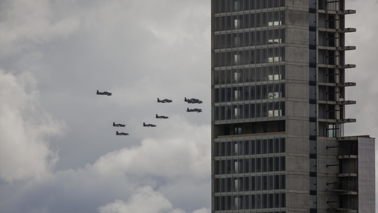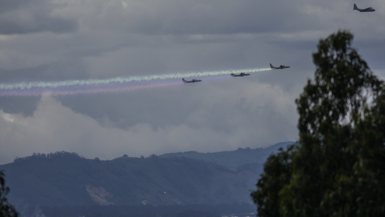 Kolombiya'nın başkenti Bogota'da, 20 Temmuz Bağımsızlık Günü kutlamaları çerçevesinde gösteri uçuşları gerçekleştirildi.