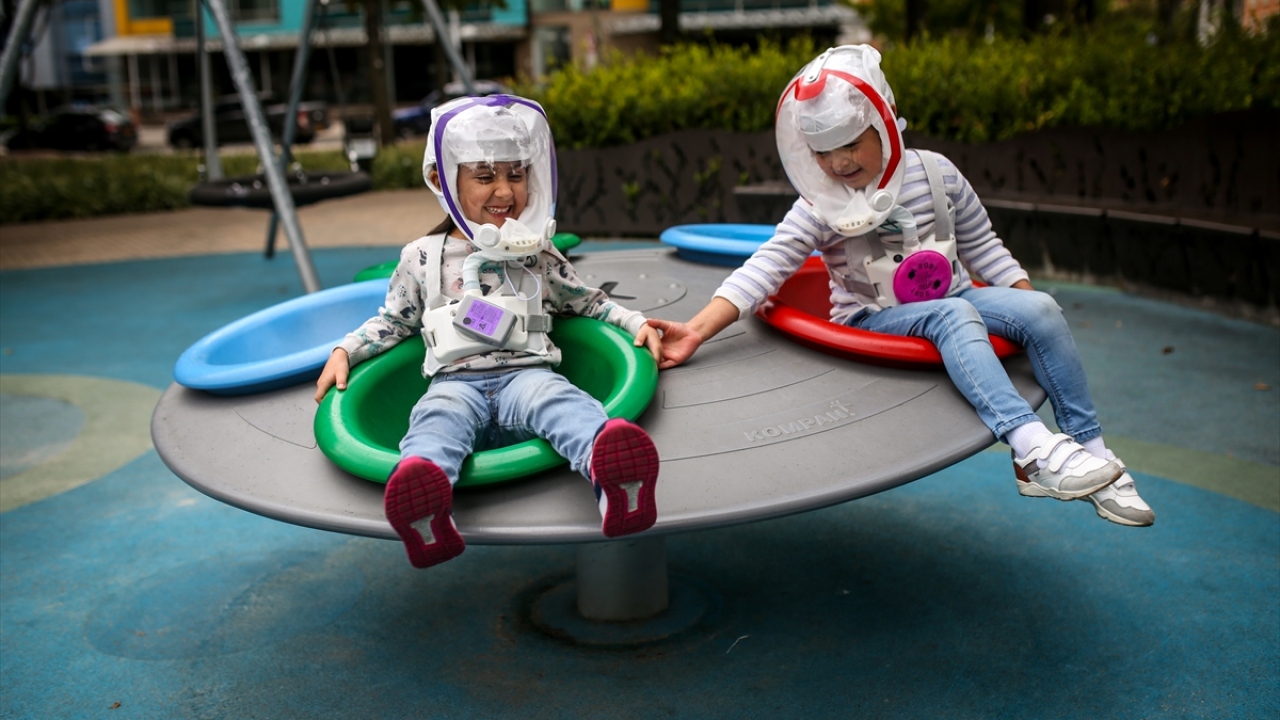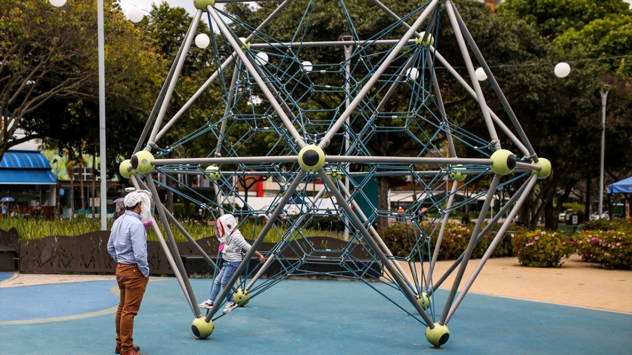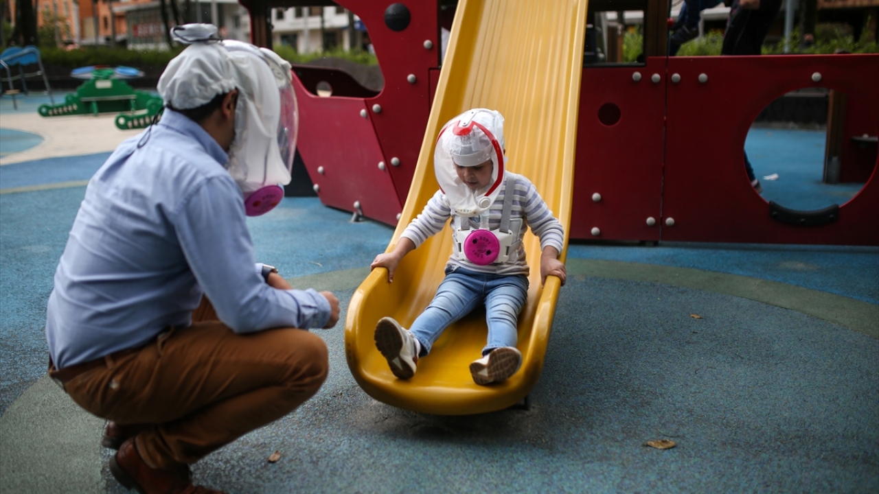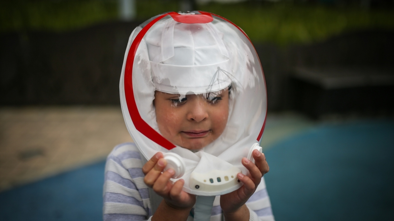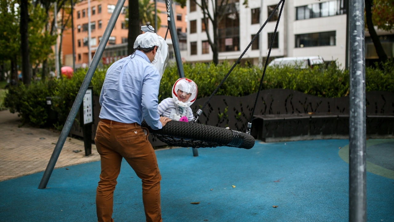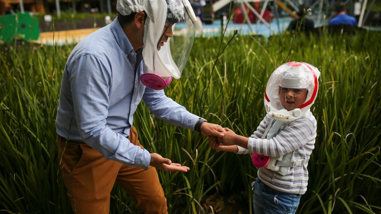 Kolombiya'nın başkenti Bogota'da, mühendis girişimciler yeni tip koronavirüs (COVID-19) ile mücadele kapsamında, yüzü bir balon şeklinde kaplayarak nefes almayı kolaylaştıracak yeni bir kask ürettiler.
