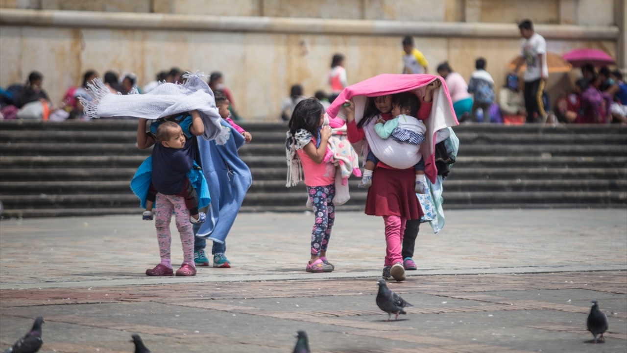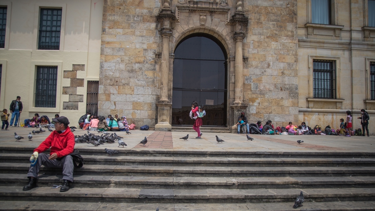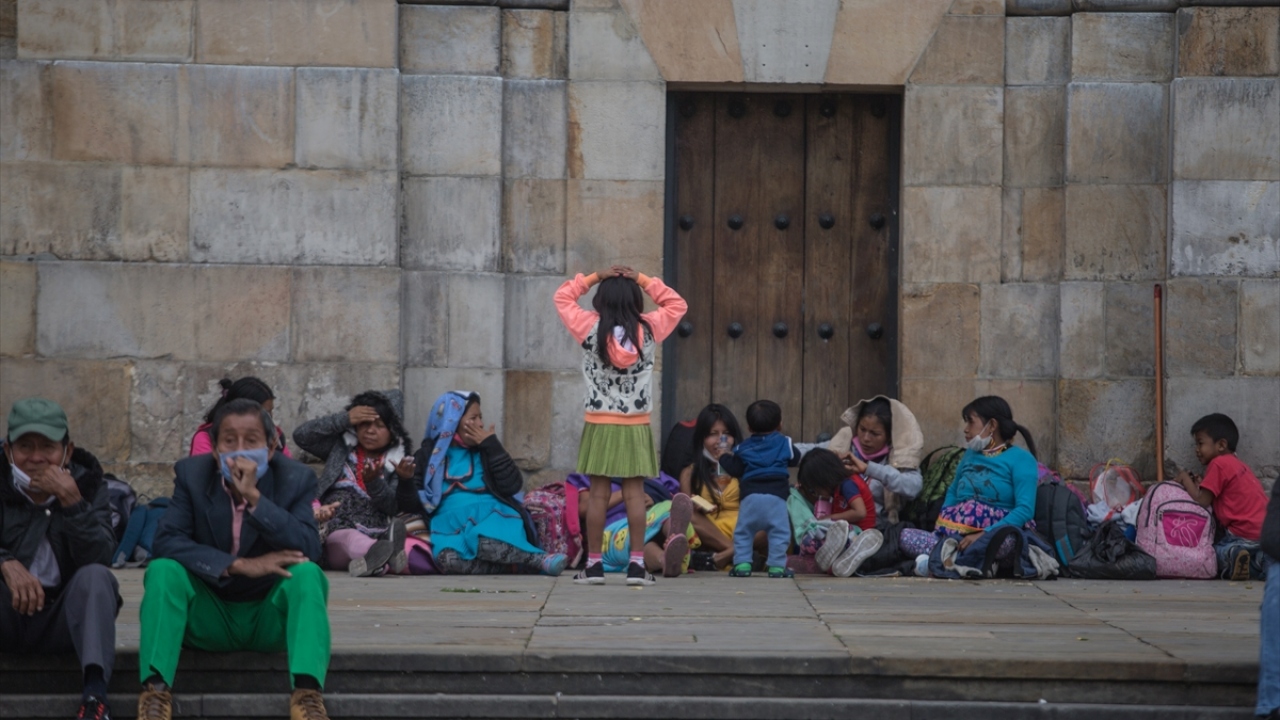 Kolombiya'nın başkenti Bogota'da yeni tip koronavirüs (Covid-19) salgını dolayısıyla alınan tedbirler kapsamında genel karantina uygulaması devam ederken evsiz kalan Embera yerlilerinin Bolivar meydanındaki zorlu mücadelesi devam ediyor.