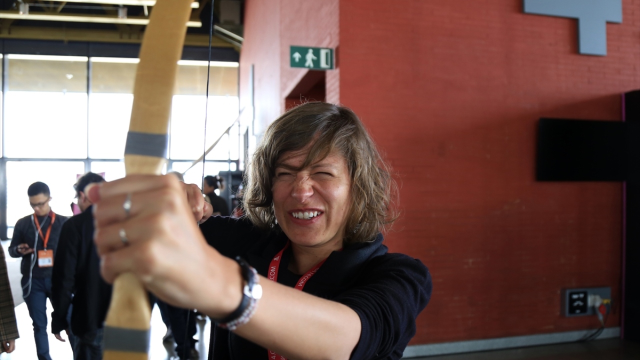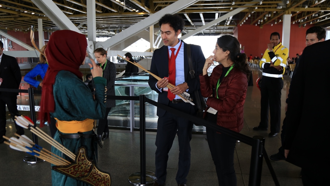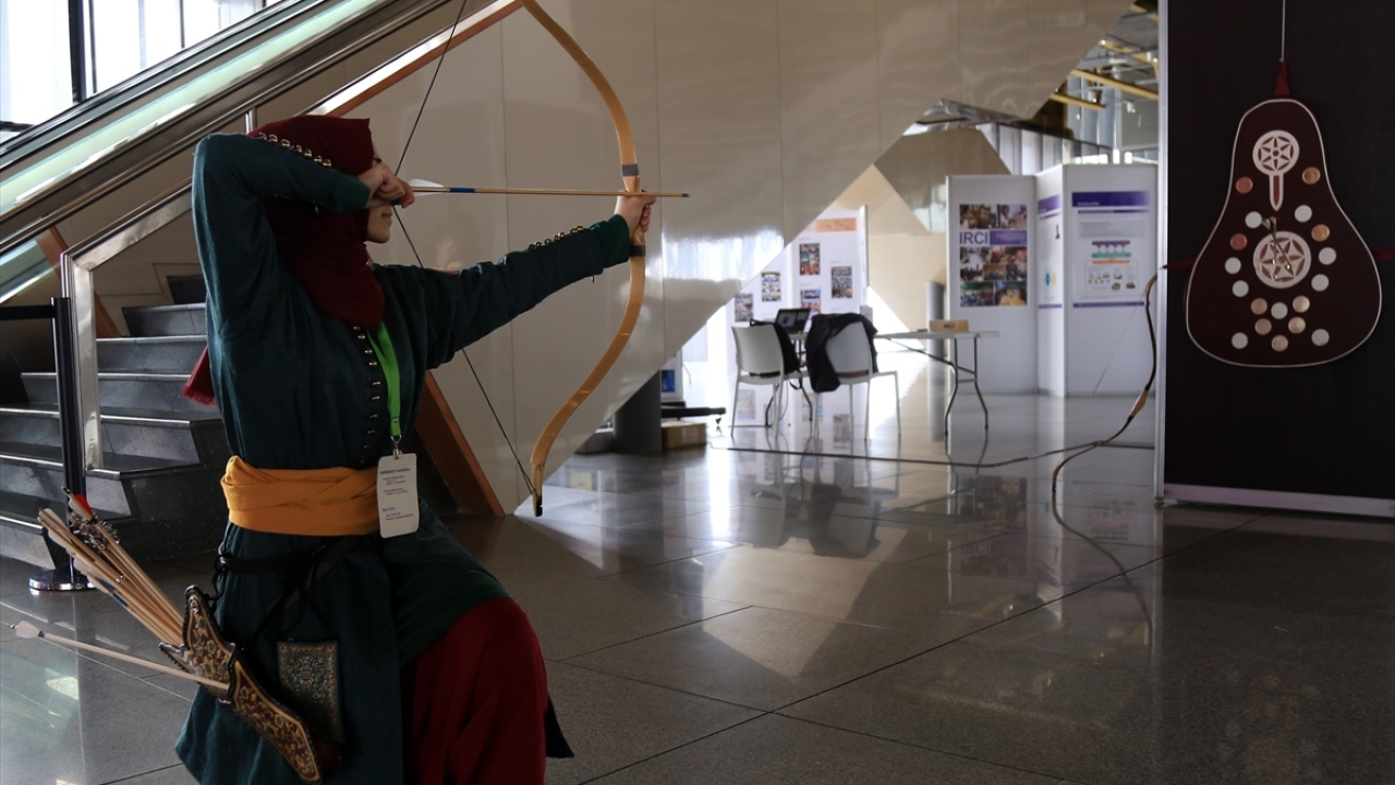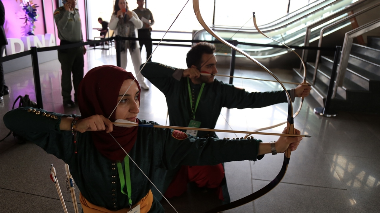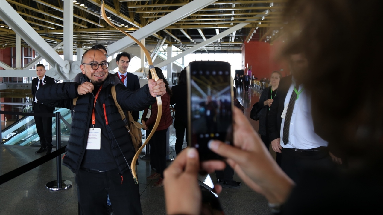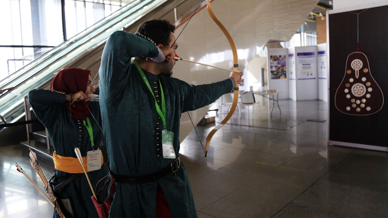 Okçular Vakfı Spor Kulübü sporcuları Kübra Balaban ve Mehmet Keskin, toplantının gerçekleştirildiği Agora Kongre Merkezinde düzenlenen etkinlikte bu alandaki hünerlerini sergiledi.