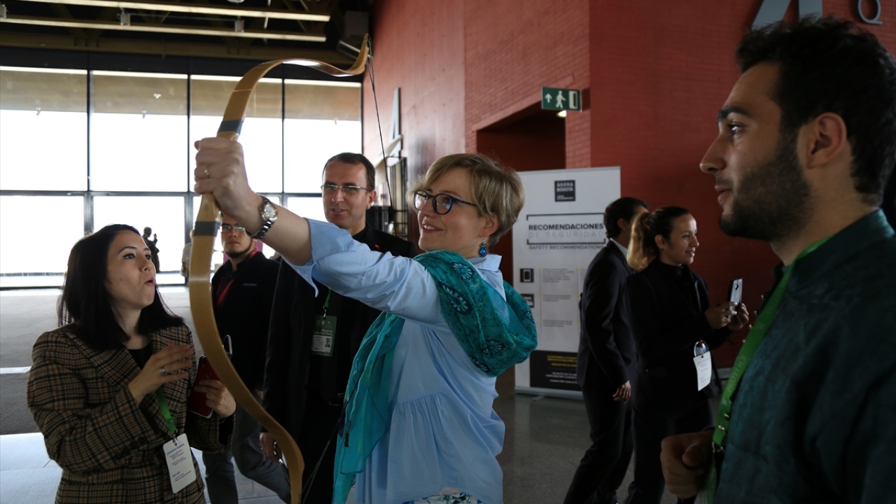 Birçok ülkeden toplantıya katılan temsilcilerin yanı sıra kongre merkezinde bulunan Kolombiyalılarca merakla seyredilen gösteride katılımcılara zihgir armağan edildi.