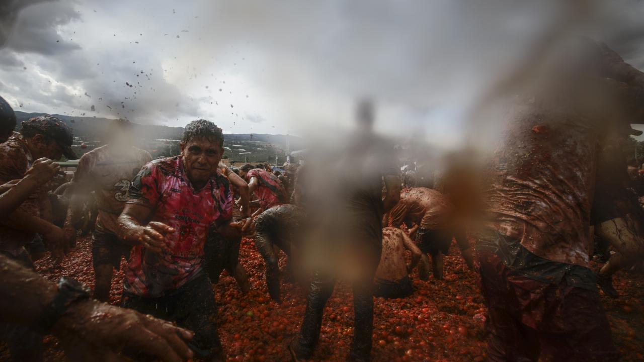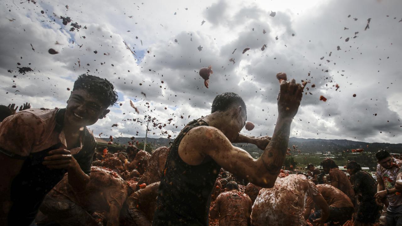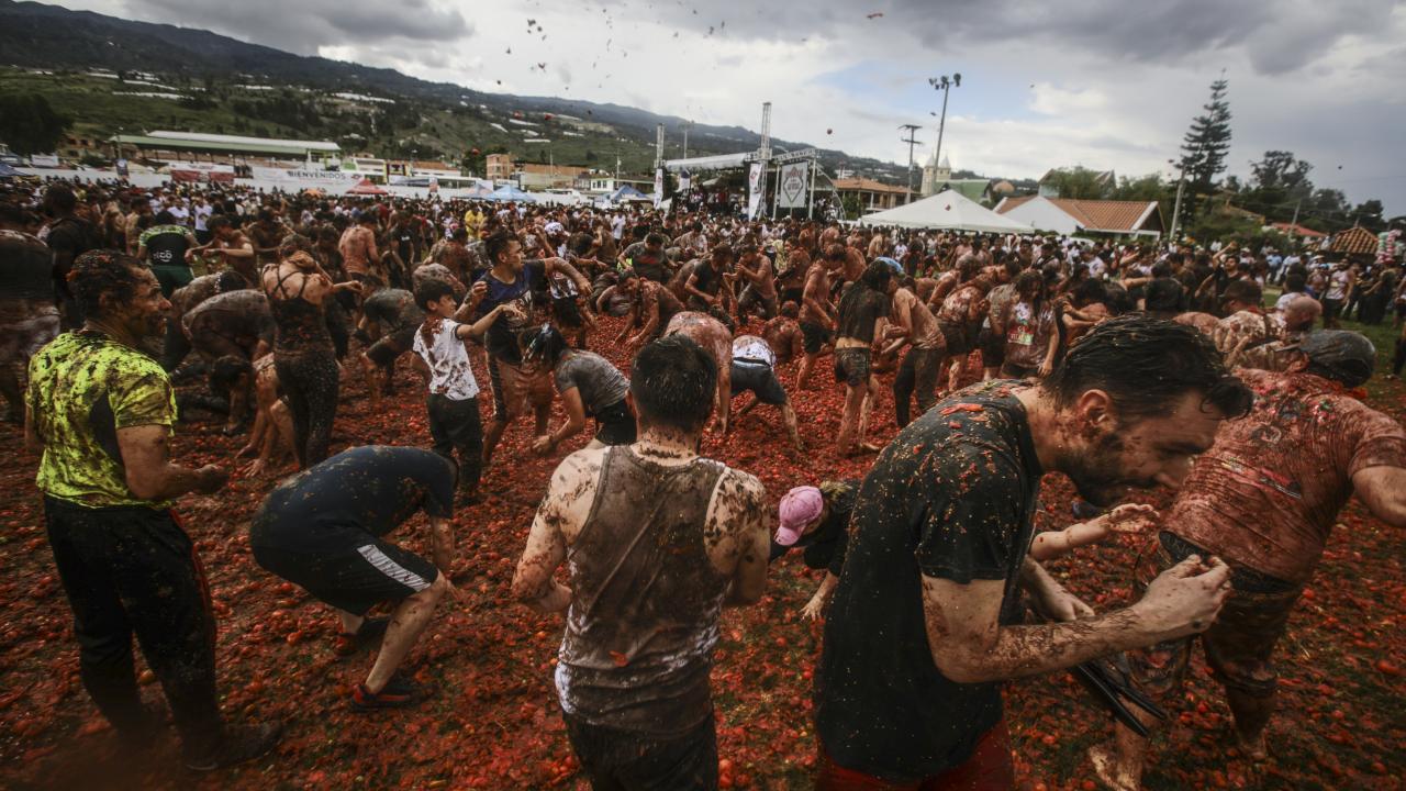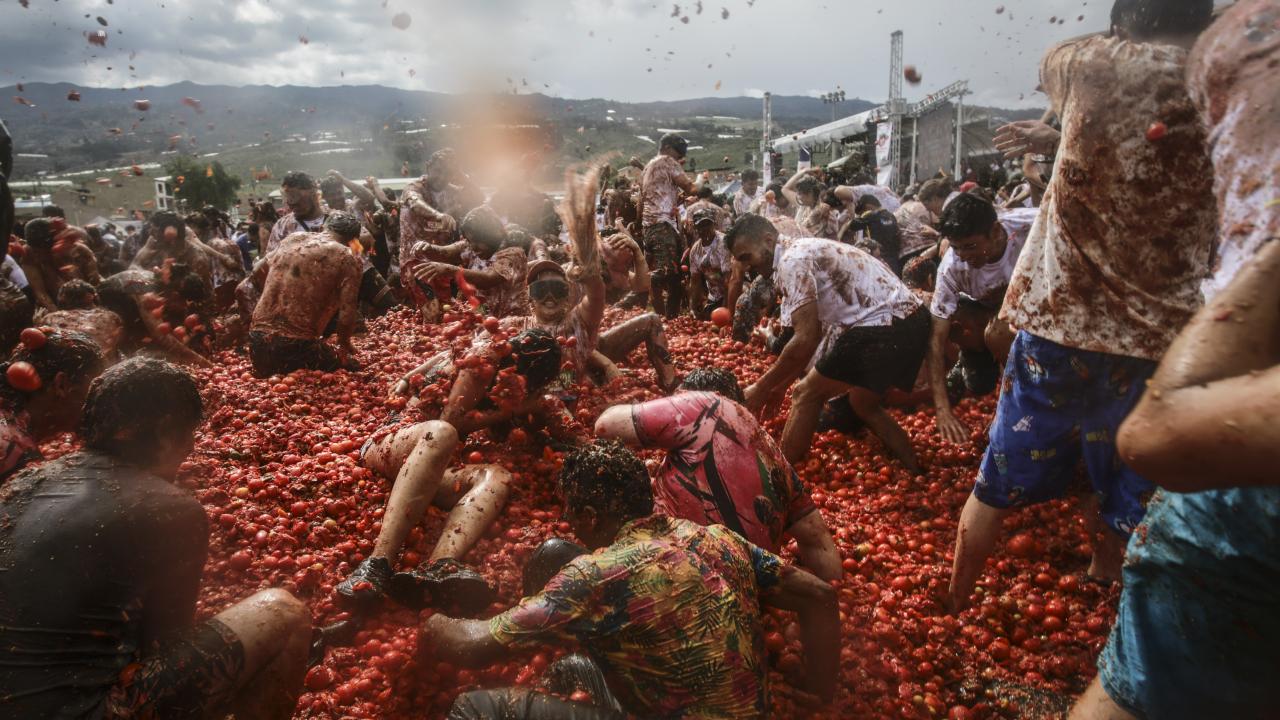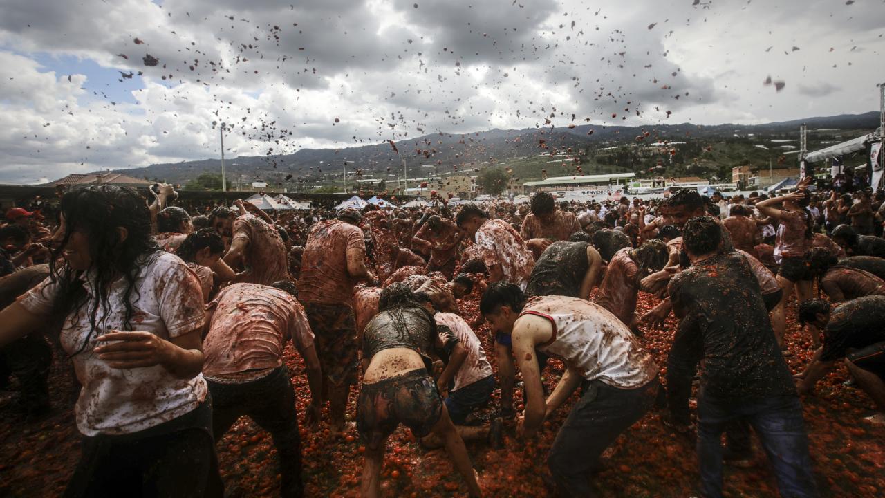 Boyaca yönetim bölgesine bağlı Stumarchan kentinde, bu yıl 14`üncüsü organize edilen festival kapsamında bir araya gelen yüzlerce kişi 40 ton domatesi birbirlerine fırlattı.