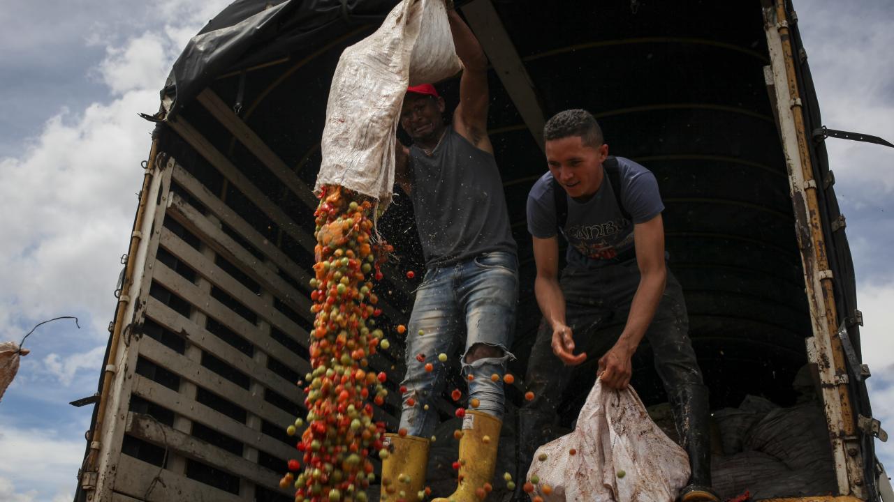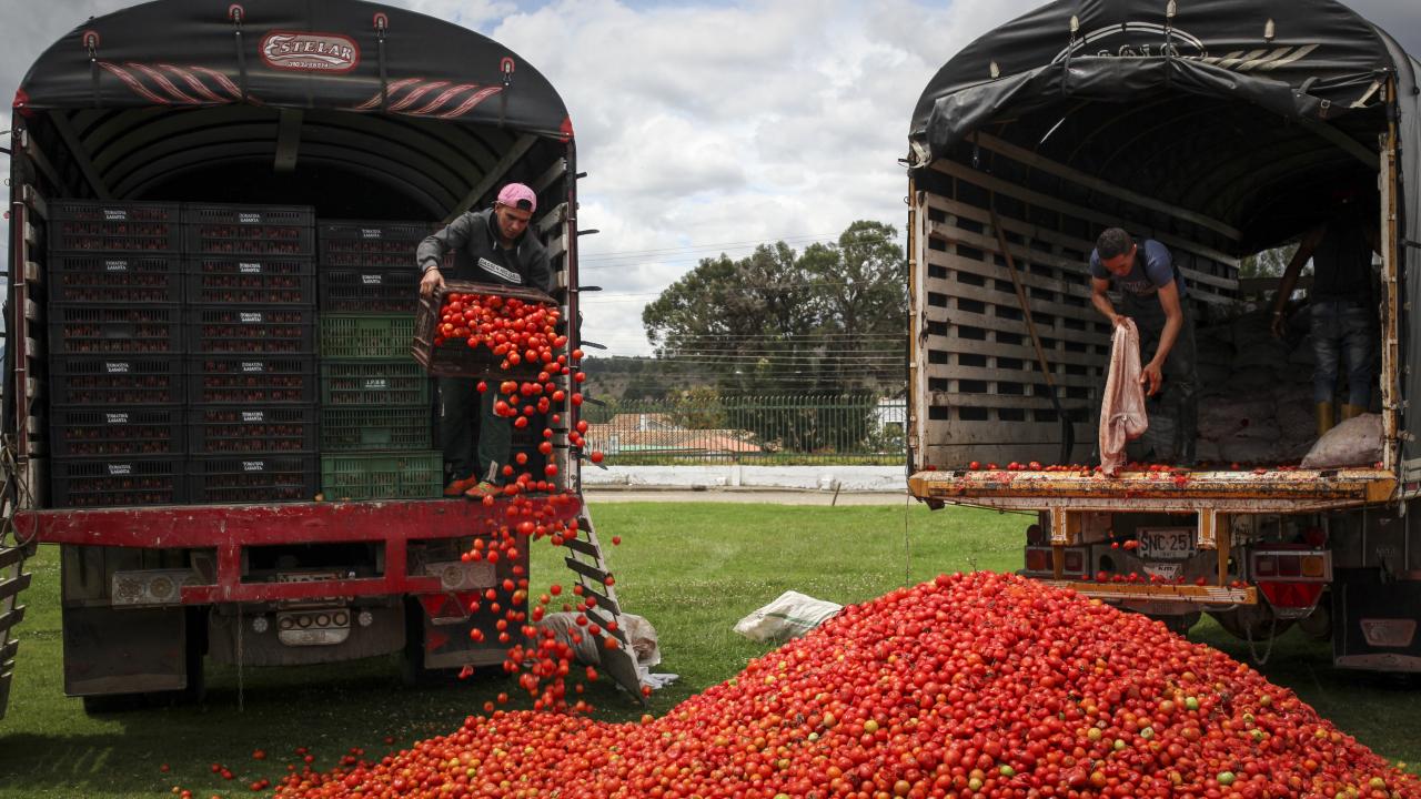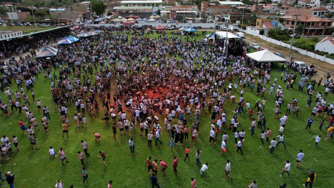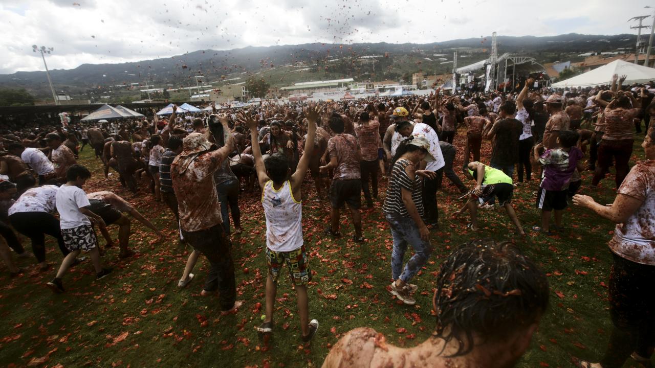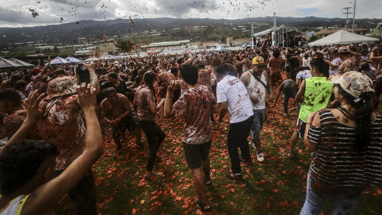 Boyaca yönetim bölgesine bağlı Stumarchan kentinde, bu yıl 14`üncüsü organize edilen festival kapsamında bir araya gelen yüzlerce kişi 40 ton domatesi birbirlerine fırlattı.