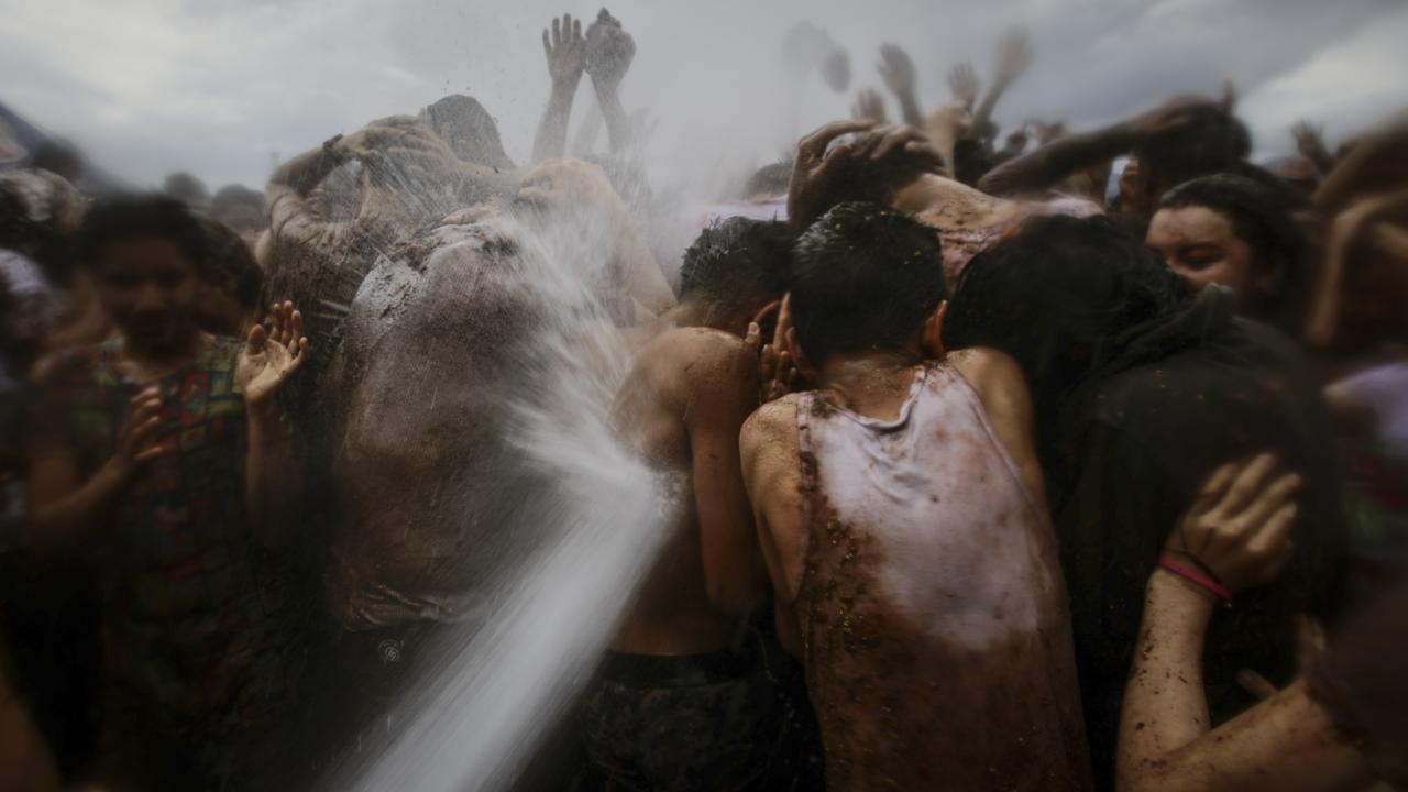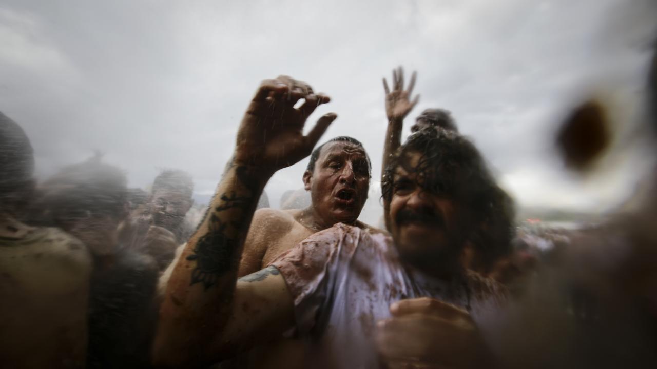 Festivale katılanlar, başlangıç düdüğüyle birbirlerini domates yağmuruna tuttu.