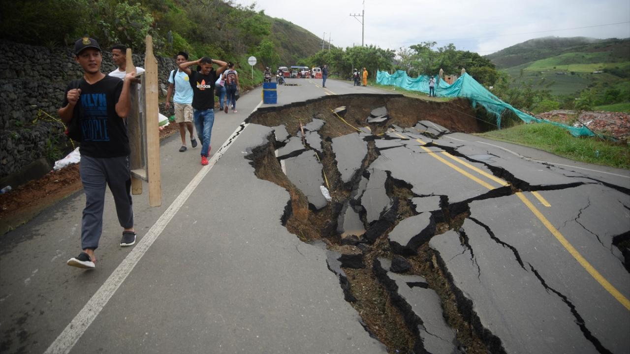 Dagua - Loboguerrero yolunda, yolun 100 metreyi aşan bir bölümü çöktü.