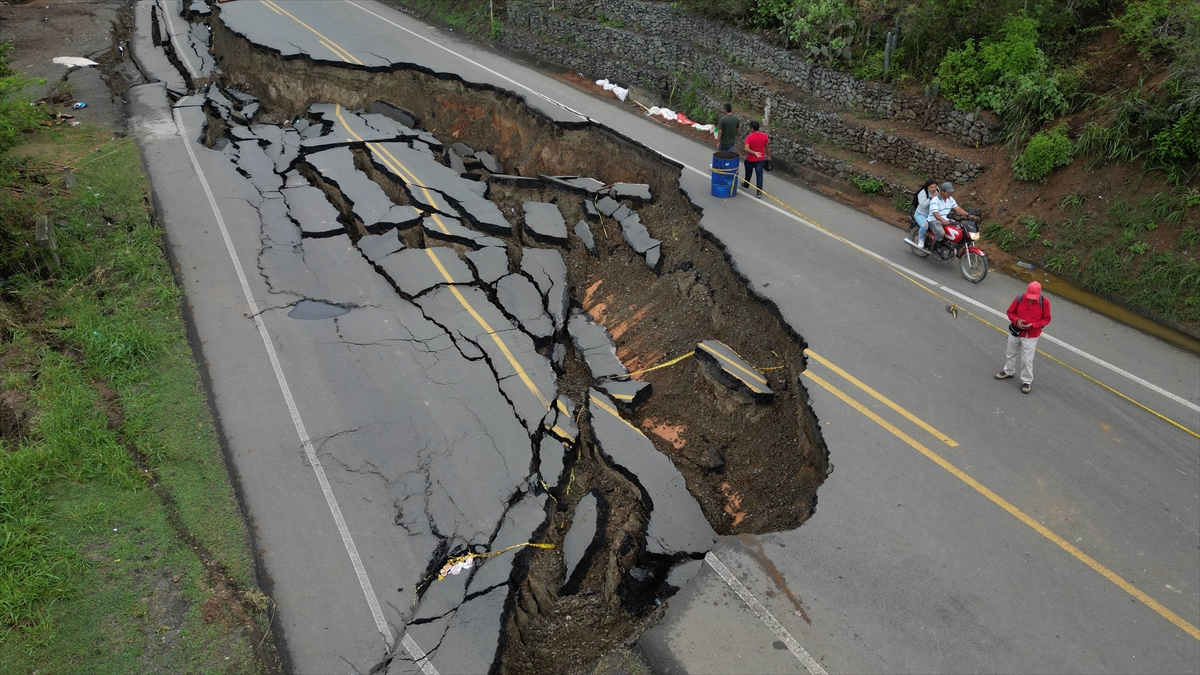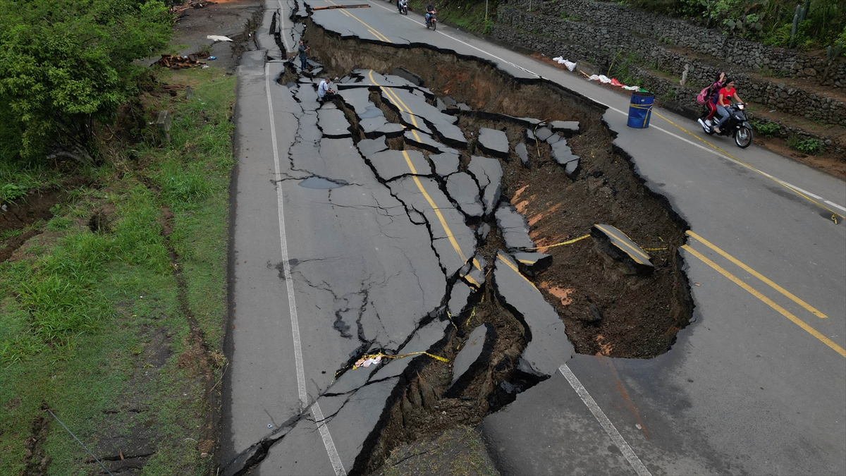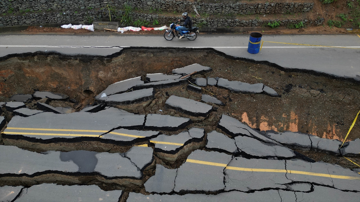 Kolombiya'da yağışlar nedeniyle bazı yollarda çökme meydana geldi