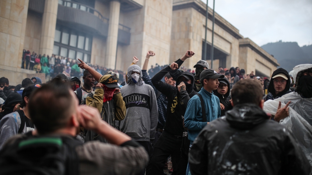 Bogota’da protestocular, farklı bölgelerden harekete geçerek kentin tarihi merkezindeki Bolivar Meydanı’na kadar yürüdü.