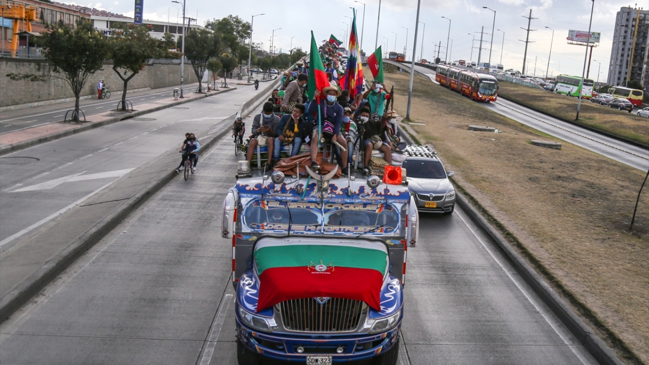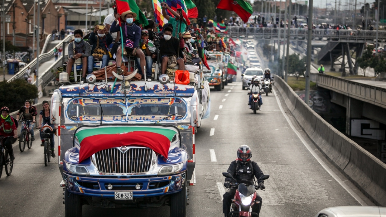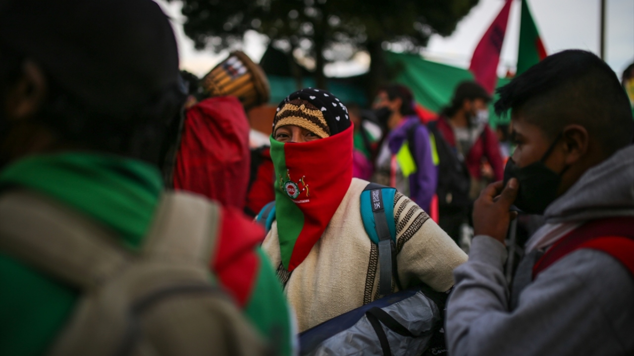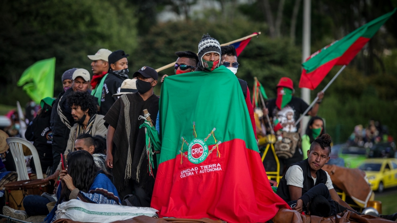 Kolombiya'daki 'Minga' olarak adlandırılan yerli topluluklar, hükümetten çeşitli haklar talep etmek amacıyla 600 kilometrelik seyahatlerini tamamlayarak başkent Bogota'ya vardı.