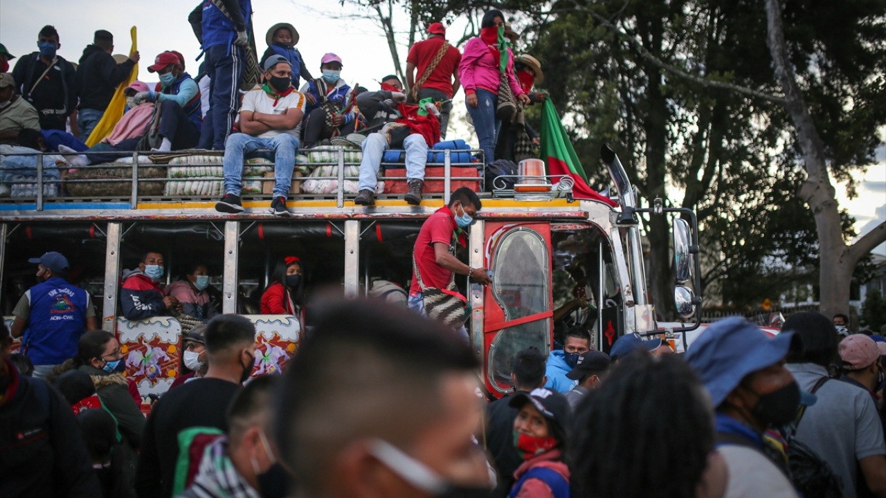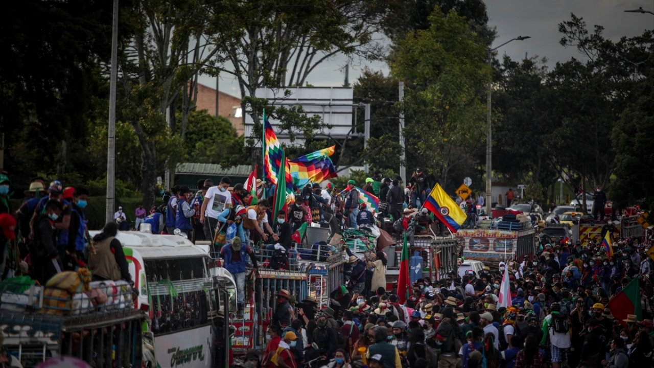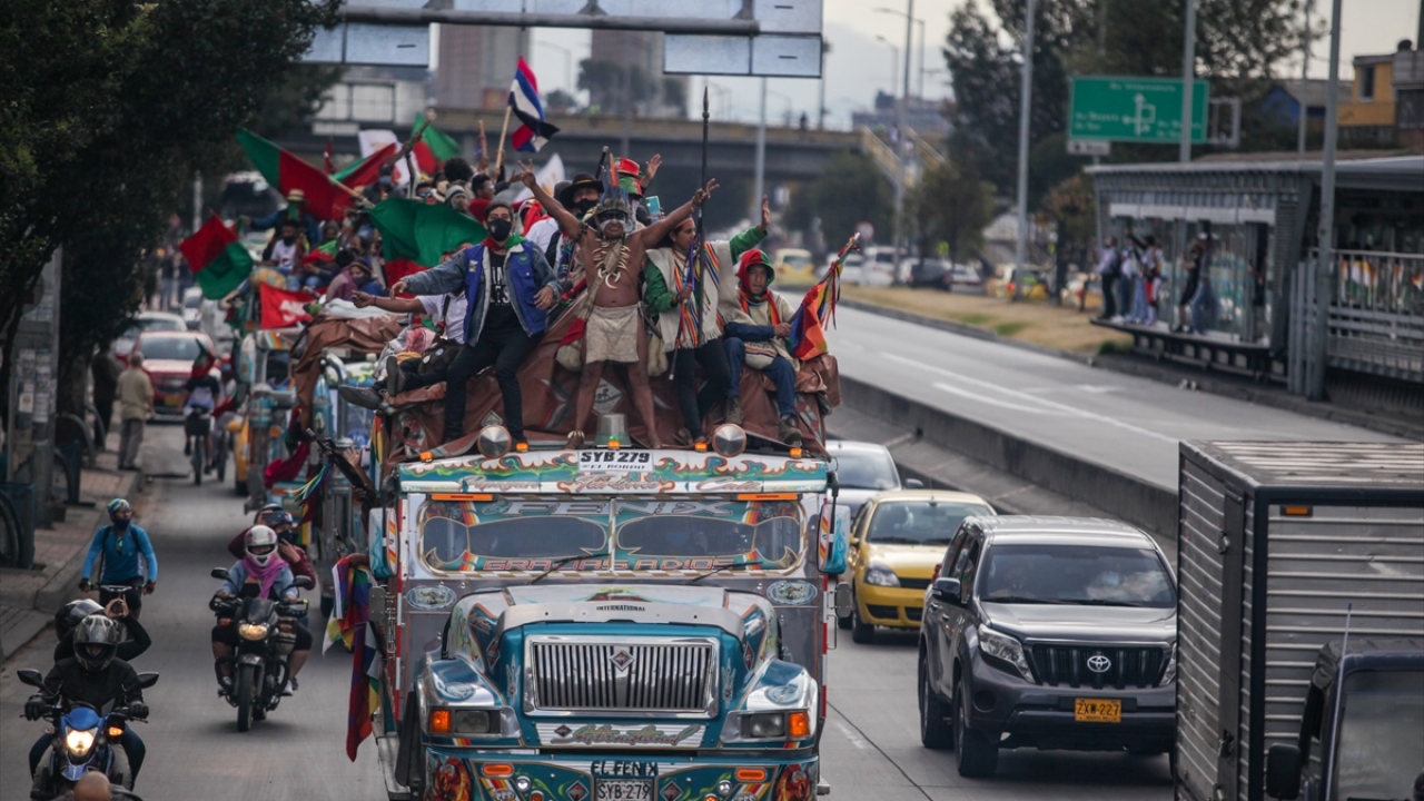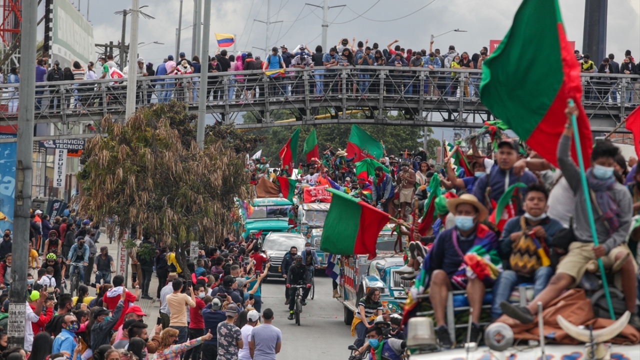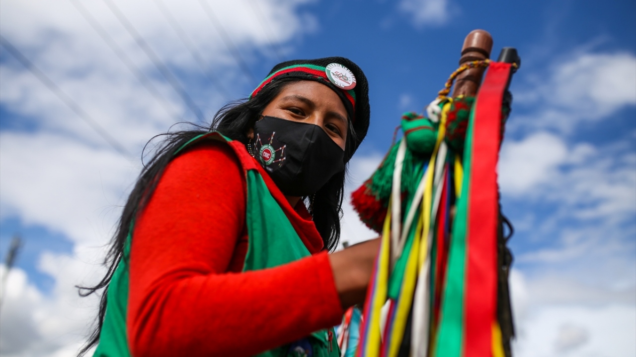 Kolombiya'daki 'Minga' olarak adlandırılan yerli topluluklar, hükümetten çeşitli haklar talep etmek amacıyla 600 kilometrelik seyahatlerini tamamlayarak başkent Bogota'ya vardı.