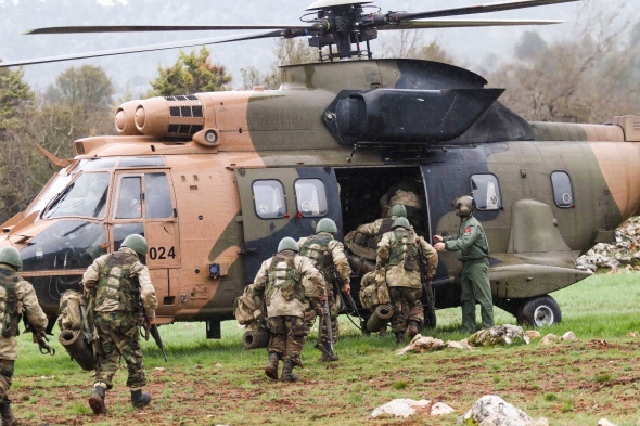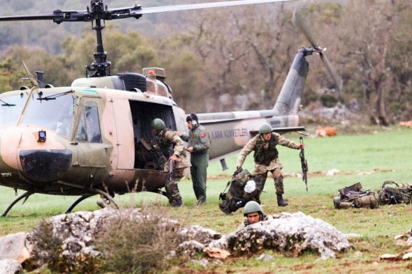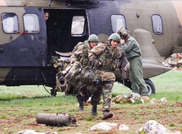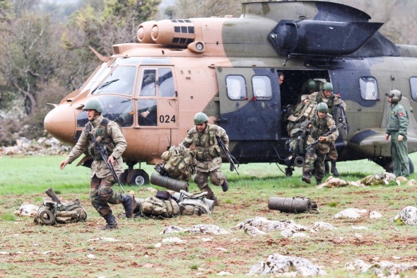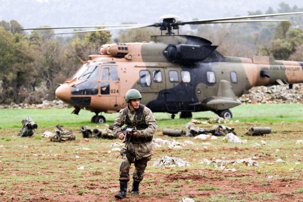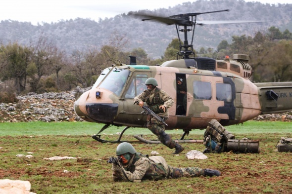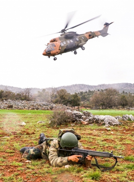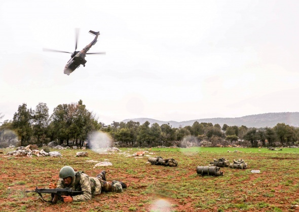 Kırsal alana inen ve komando adaylarını araziye bırakan helikopterin ayrılmasının ardından arazide terörist arayan adaylar, kendilerine kurulan pusuya da anında karşılık verdi.