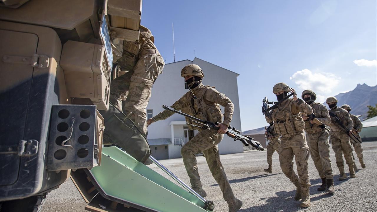 Operasyon merkezinde komutanlardan bölgedeki son durumla ilgili bilgi alan komandolar, silahlarını kuşanıp zırhlı araçlarla operasyon bölgesine ulaştırıldı.