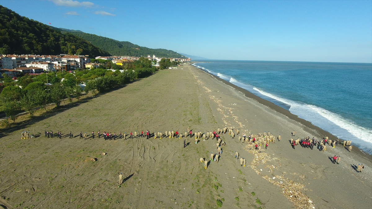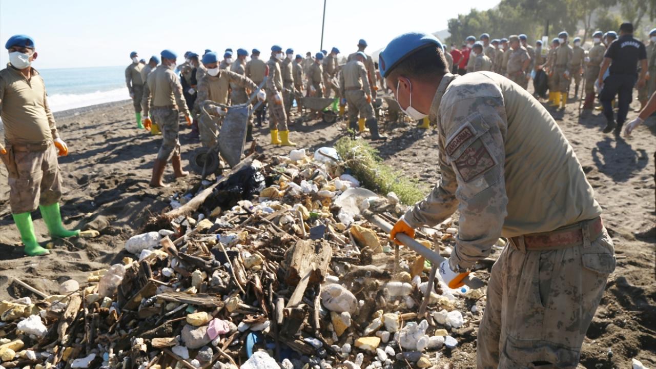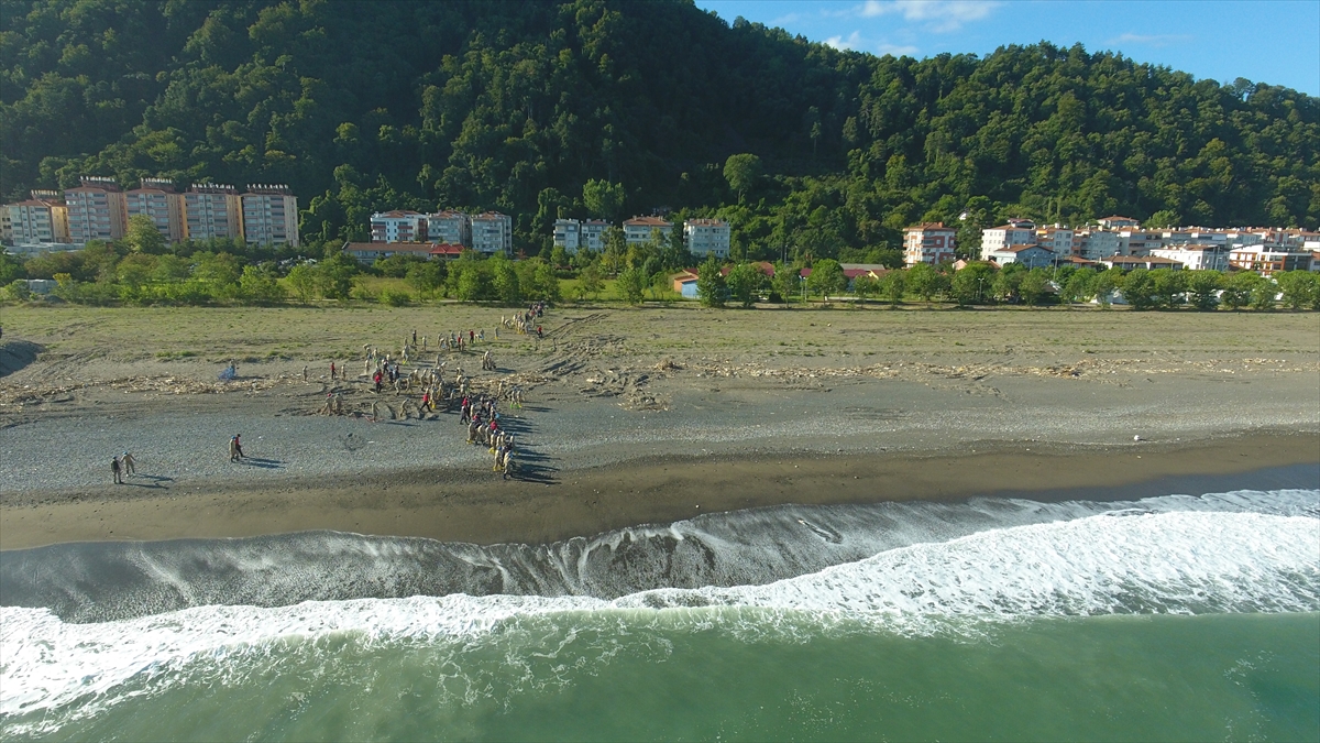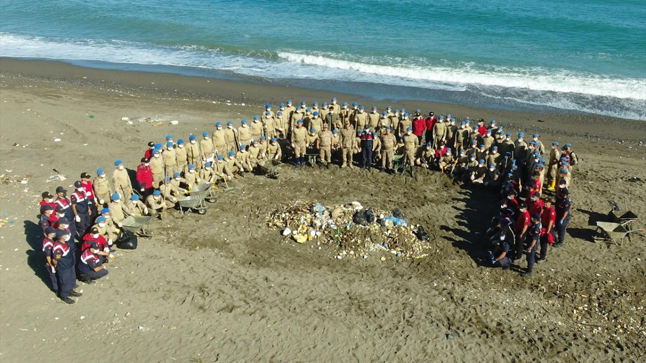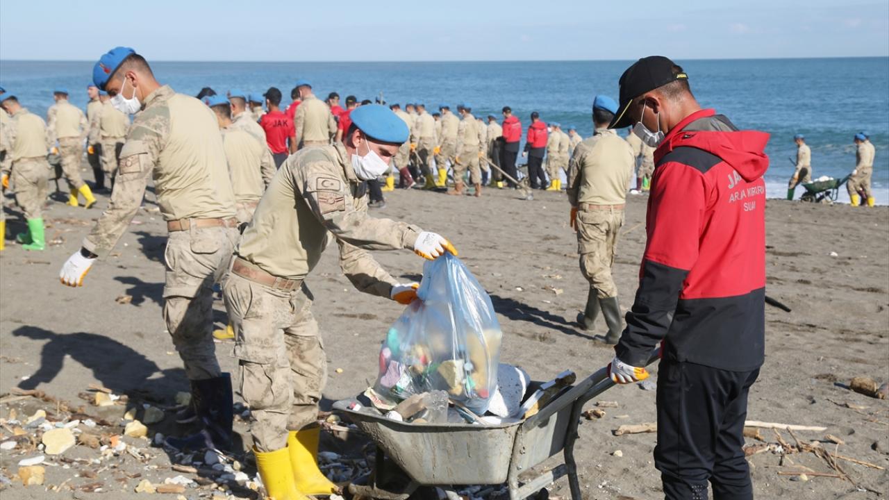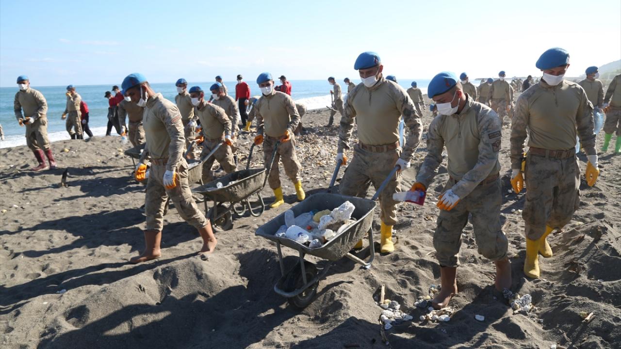 Kastamonu'da 11 Ağustos'ta yaşanan sel felaketi sonrası Ezine Çayı'nın Karadeniz sahilindeki Abana ilçesine taşıdığı çöpler, jandarma tarafından temizlendi.