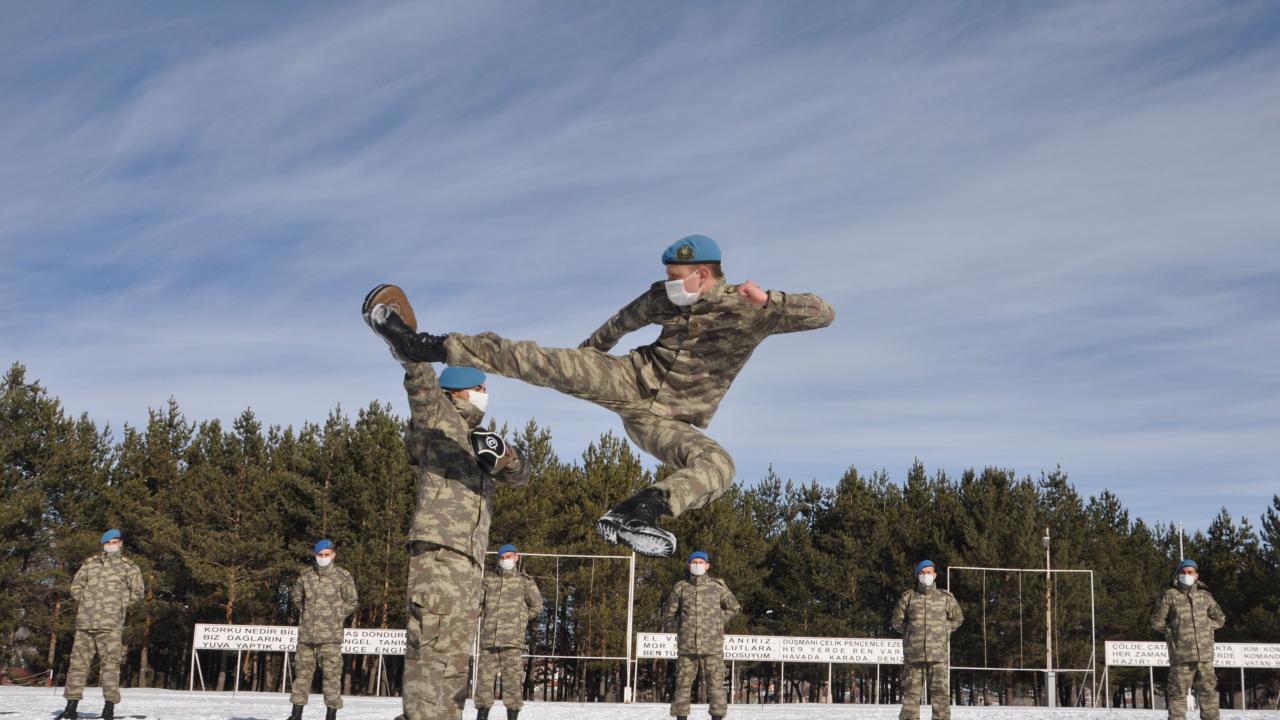 Milli Savunma Bakanlığı, Kars'ta konuşlu 9'uncu Komando Tugay Komutanlığı'nda görevli komandoların, yakın dövüş ve göğüs göğüse muhabere eğitimleri icra ettiğini duyurdu.