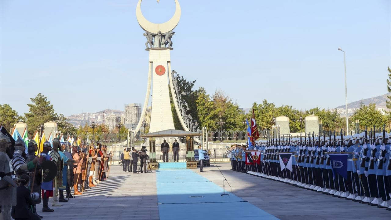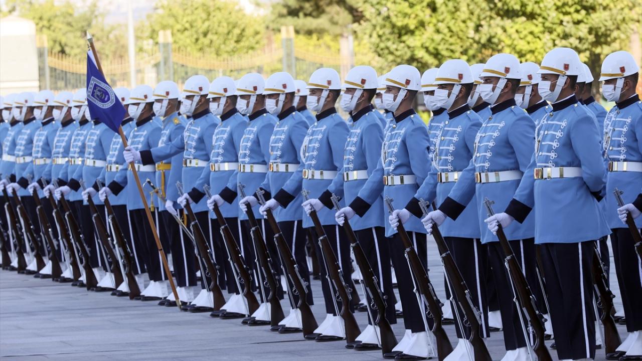 Konuk Cumhurbaşkanı Felix Tshisekedi`nin içinde bulunduğu makam aracını, Cumhurbaşkanlığı Külliyesi`nin önündeki caddede karşılayan süvariler, Tshisekedi`ye protokol kapısına kadar eşlik etti.