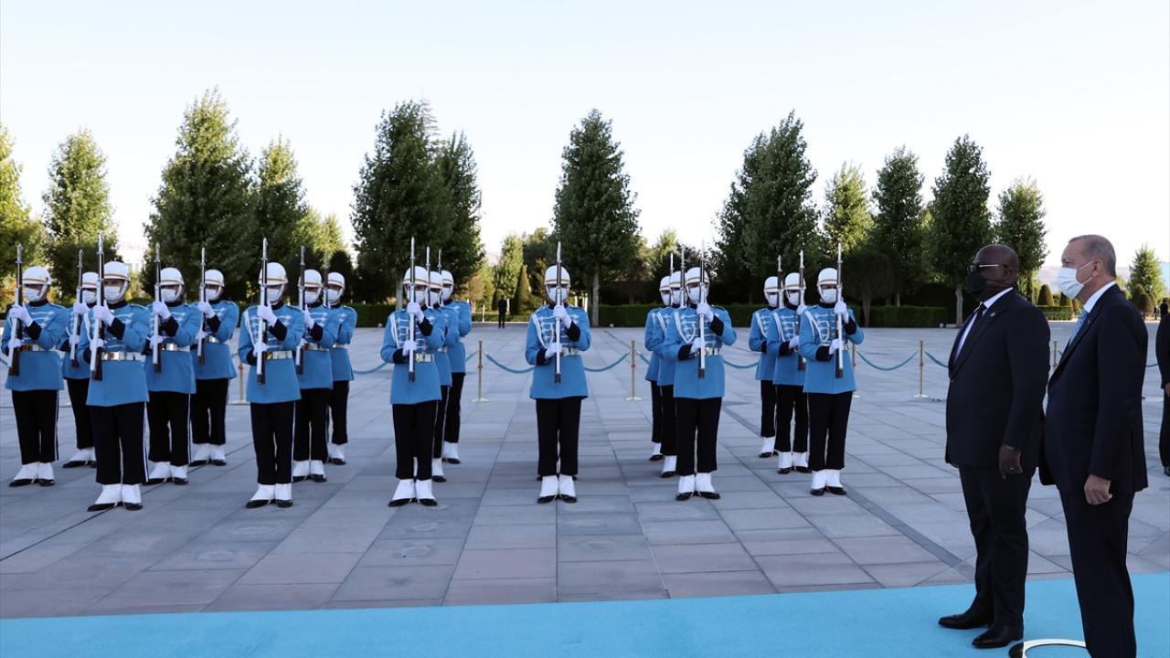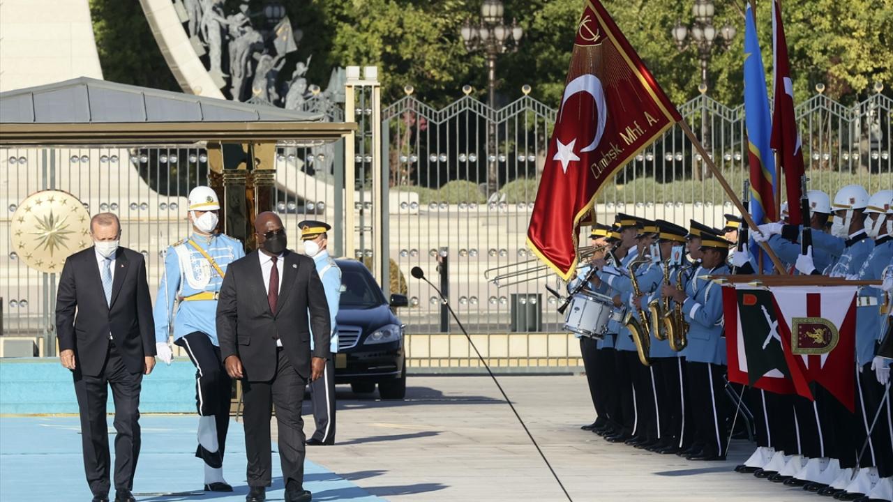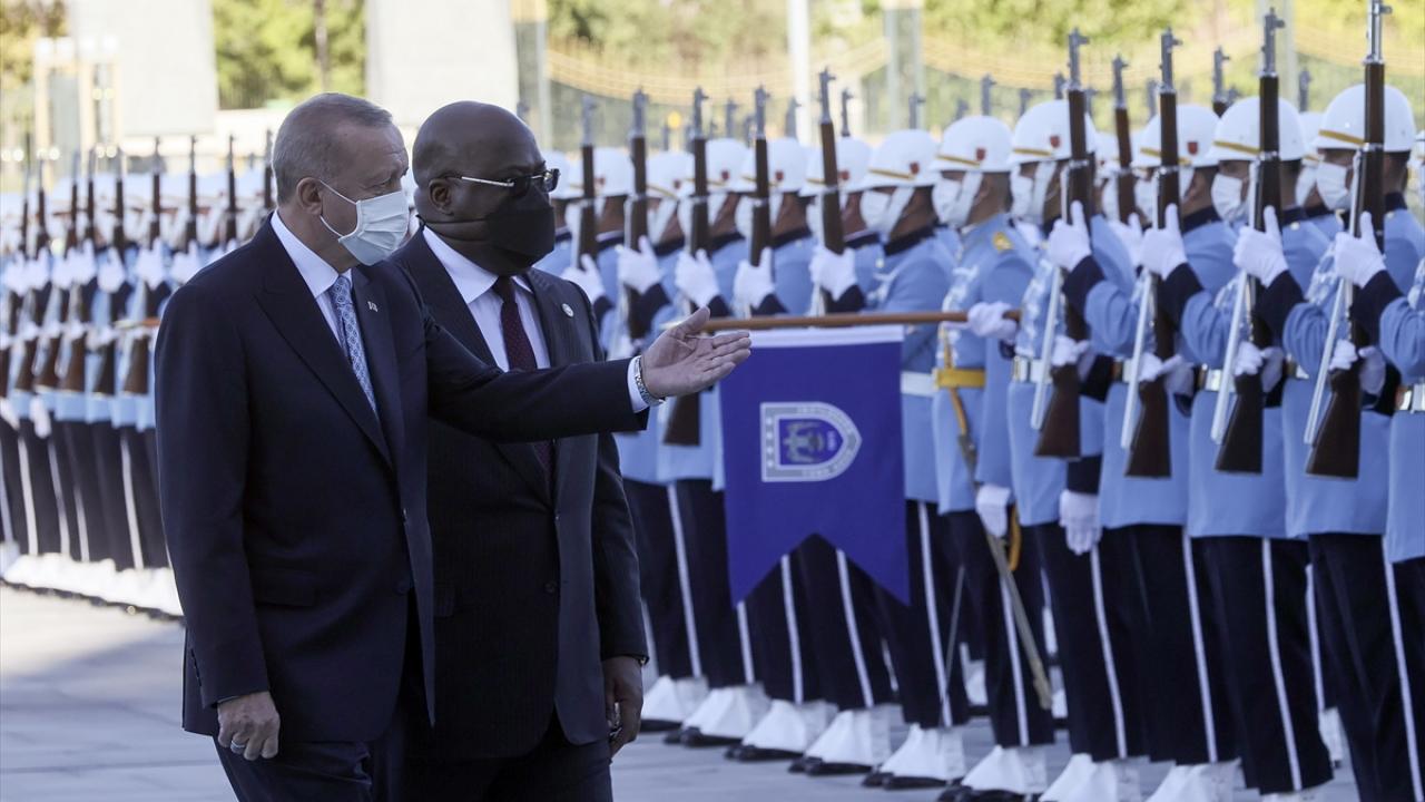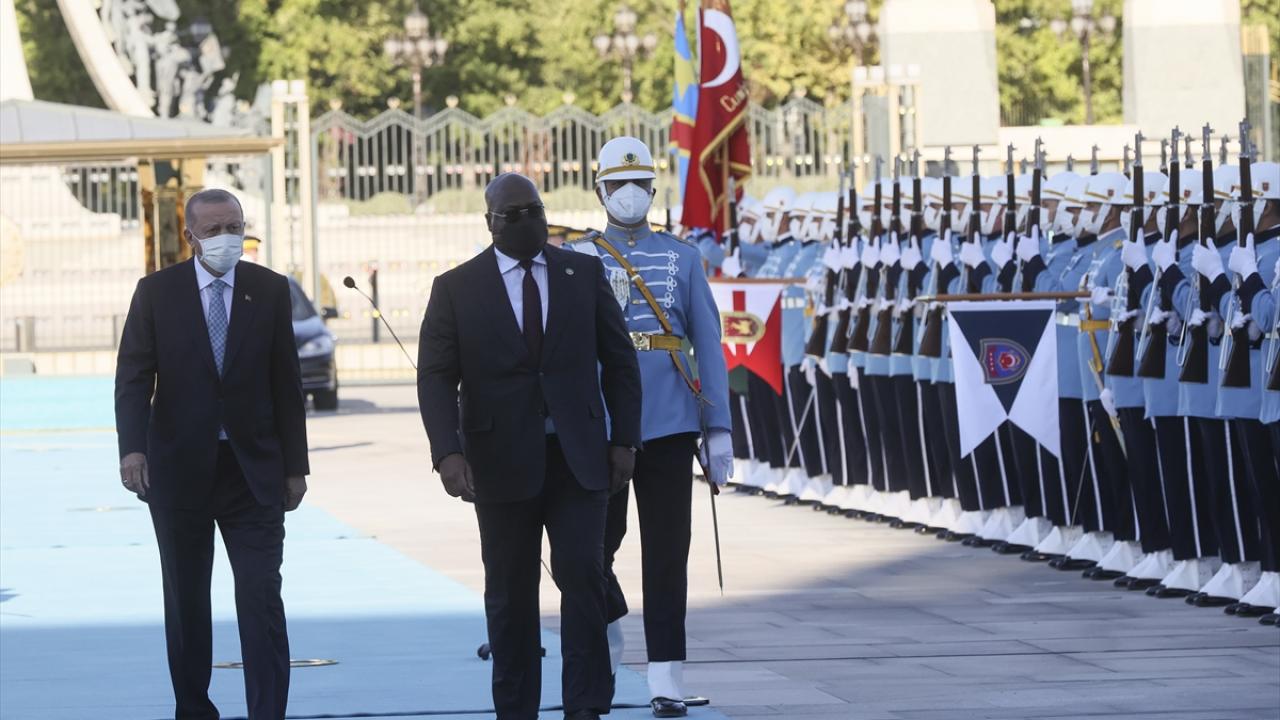 Erdoğan ve Tshisekedi`nin tören alanındaki yerlerini almalarının ardından, 21 pare top atışı eşliğinde iki ülkenin milli marşları çalındı.