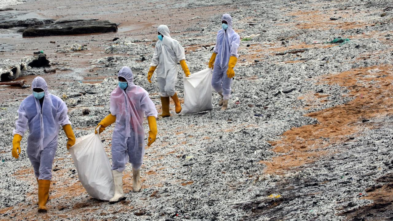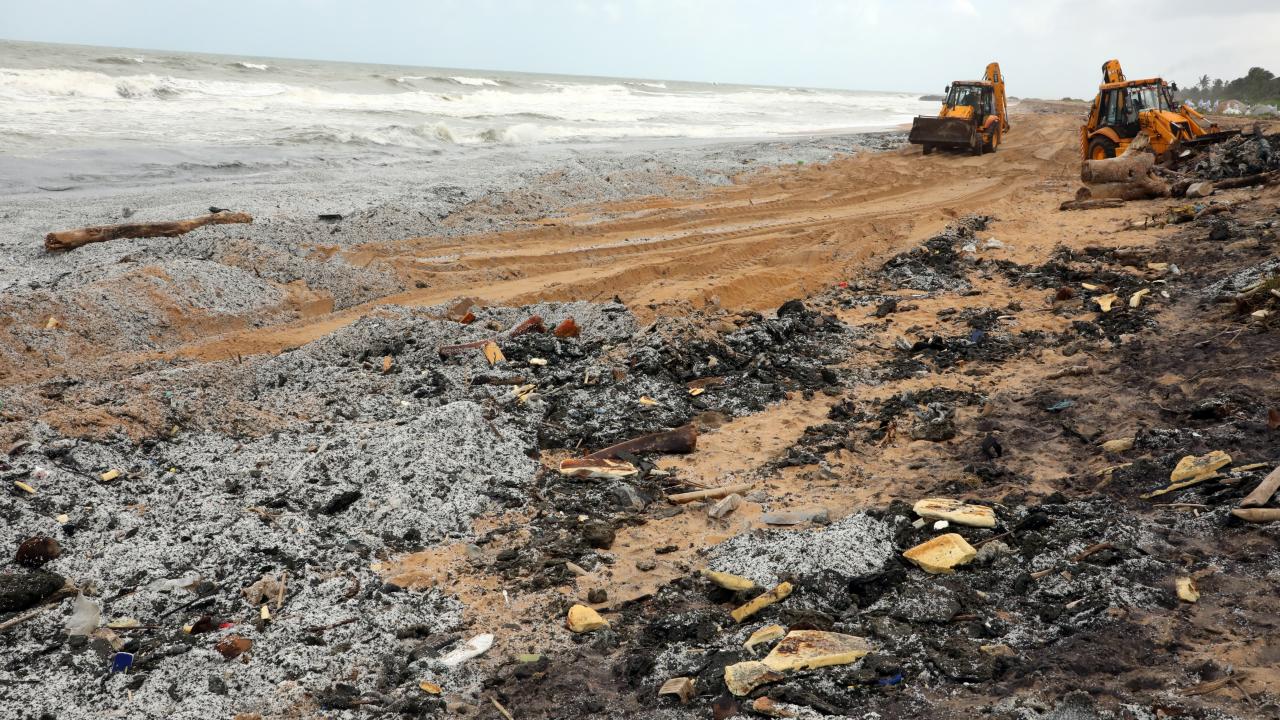 Sri Lanka açıklarında kimyasal madde taşıyan "MV X-Press Pearl" konteyner gemisinde çıkan yangın 7. günde kontrol altına alınabildi. 21 Mayıs’ta çıkan yangın sonrası gemiden kopan enkaz parçaları ve yanan peletler kıyıya vururdu. Sri Lanka Donanmasına bağlı personeller koruyucu kıyafet giyerek beyaz örtüyle kaplanan sahili temizlemeye çalıştı.