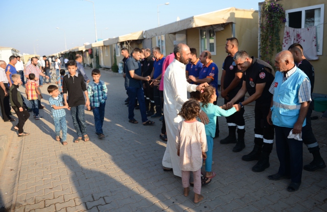 Ülkelerinde yaşanan iç savaştan kaçarak Türkiye'ye sığınan ve konteyner kentlerde barınan Suriyeliler, Kurban Bayramı'nı ülkelerinden uzakta karşılamanın burukluğunu yaşıyor. Kilis'te, Elbeyli Konteyner Kentteki camilerde saf tutan Suriyeliler, bayram namazını kıldı.