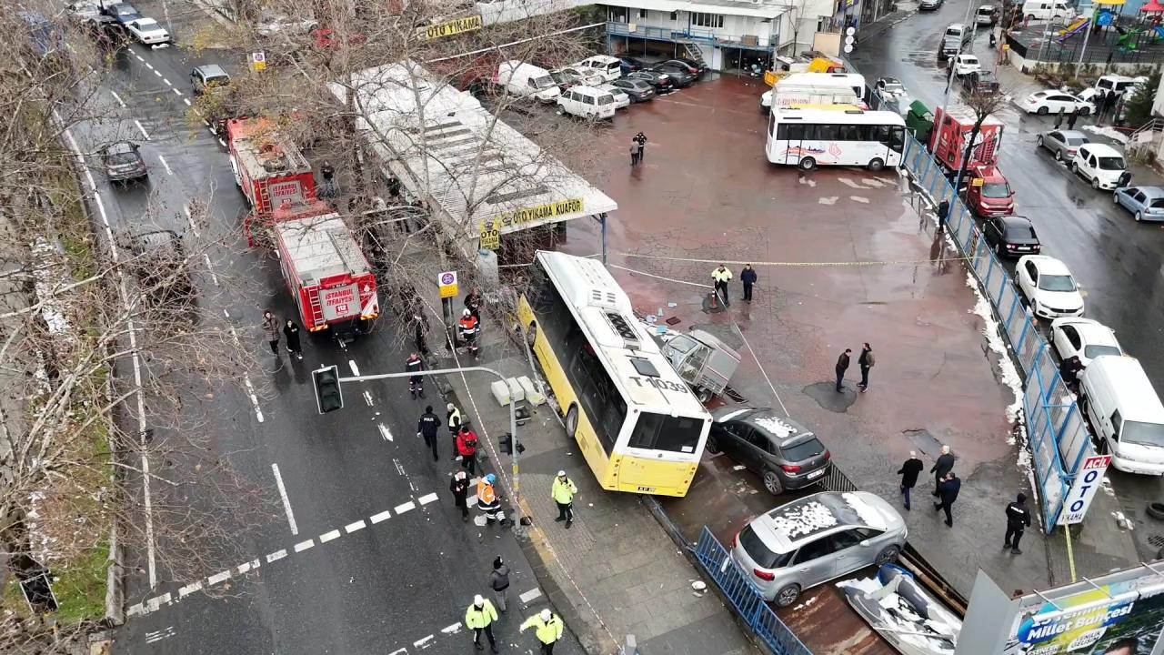İlk önce kaldırıma çıkan otobüs, daha sonra yol kenarındaki otopark ve oto yıkama olarak faaliyet gösteren bir işletmeye daldı.