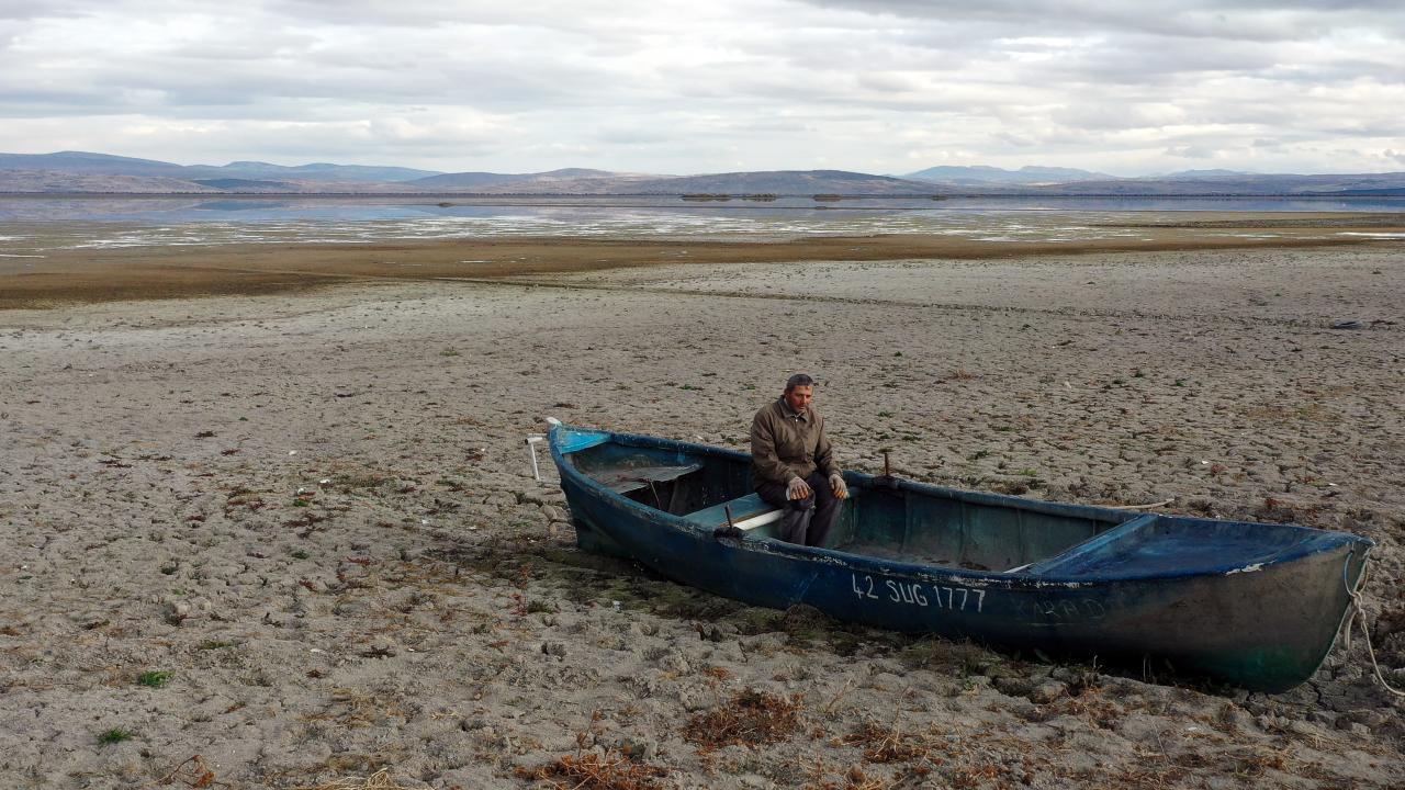 Konya'da, küresel iklim değişikliği nedeniyle sonbaharda da beklenen yağışların düşmemesi kuraklığın etkilerini artırırken göllerdeki çekilme devam ediyor.