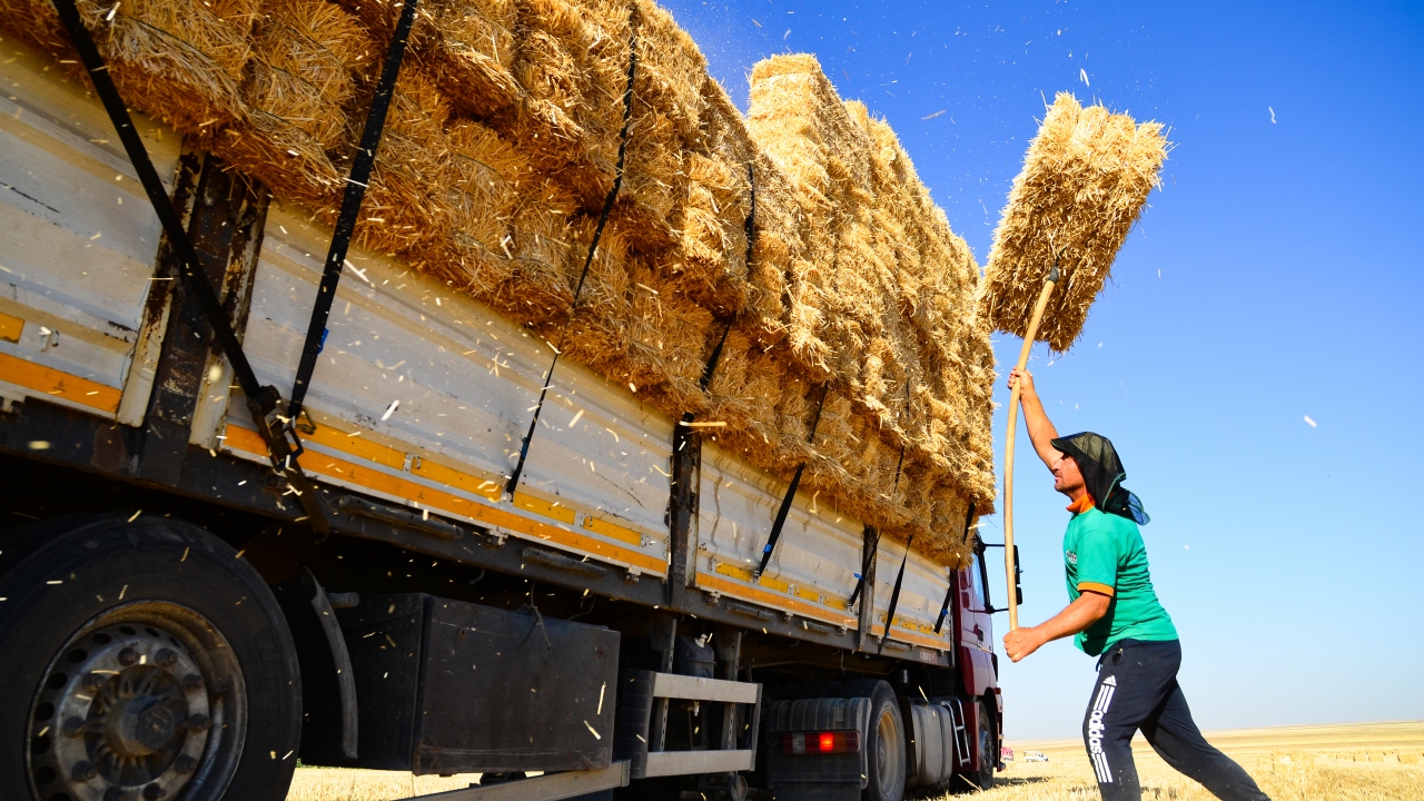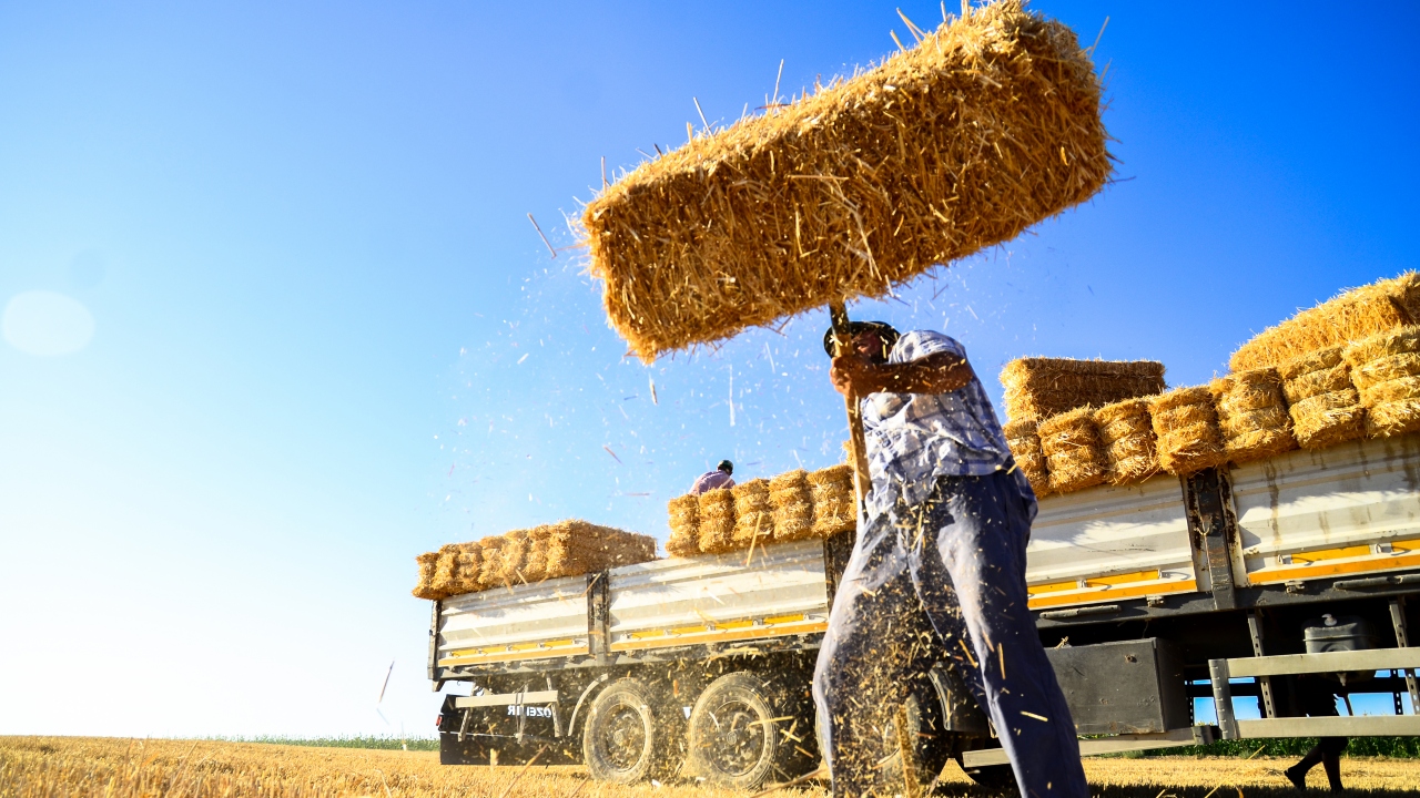 Hasadın ardından tarlada kalan sapların, iş makinelerince dikdörtgen şekilde preslenmesiyle oluşturulan balyalar, işçilerin beden gücüyle araçlara yüklenerek hayvancılık işletmelerine taşınıyor. Sabahın erken saatlerinden gün batımına kadar kavurucu sıcağın altında yükleme yapan işçilerin alnında ter, üzerinde ise toz hiç eksik olmuyor.