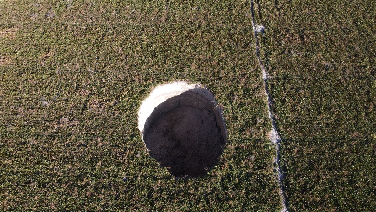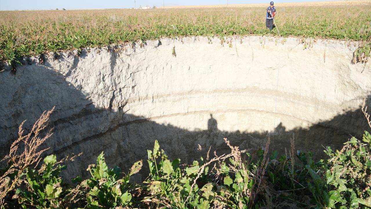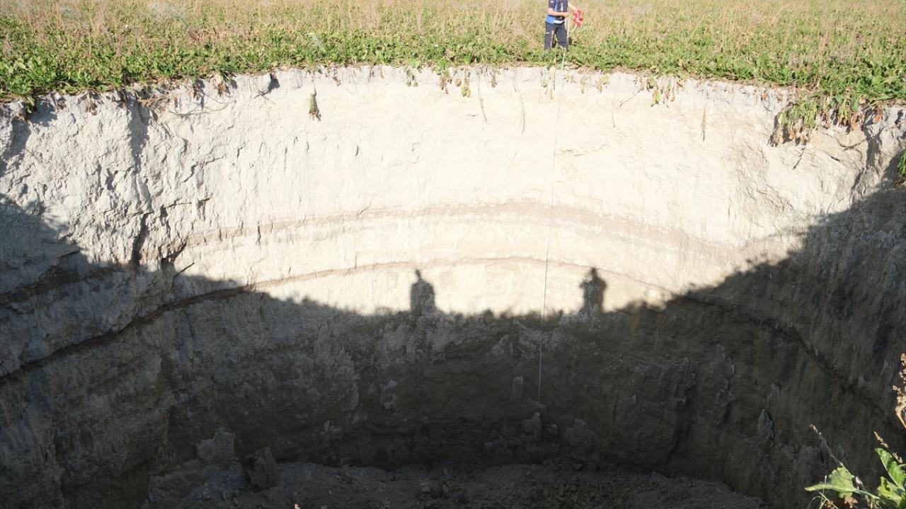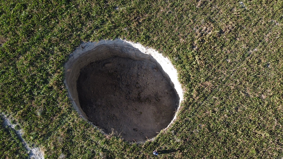 Çapı yaklaşık 27 metre, derinliği ise 12 metreyi bulan obruğu görünce tedirgin olan vatandaşlar, durumu yetkililere bildirdi.