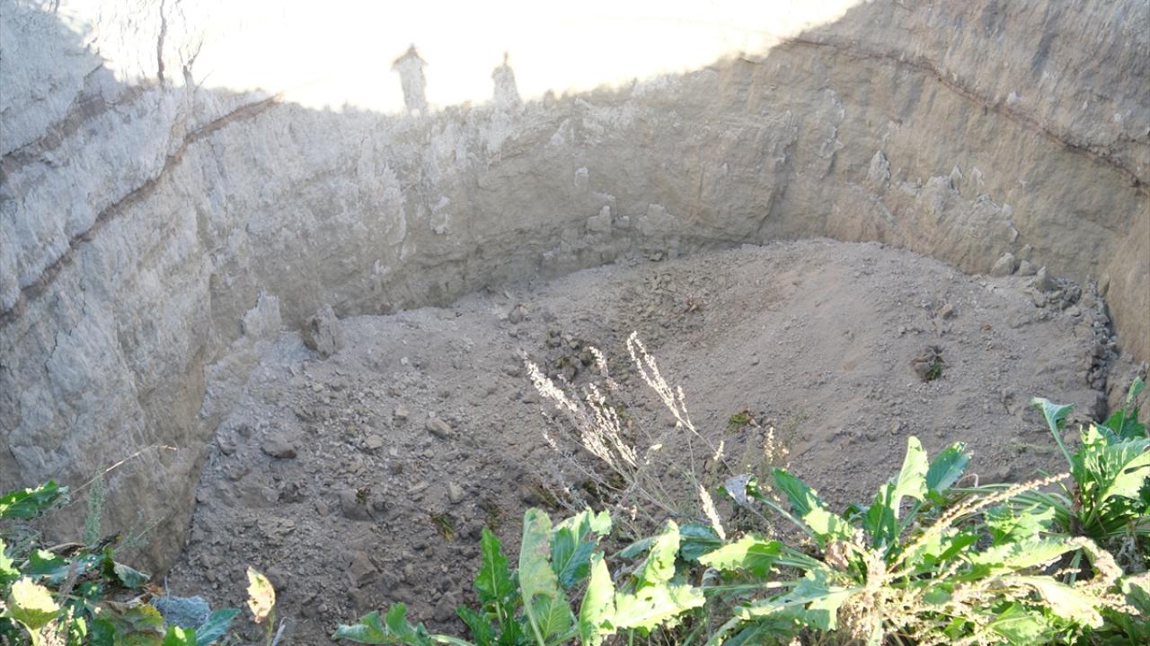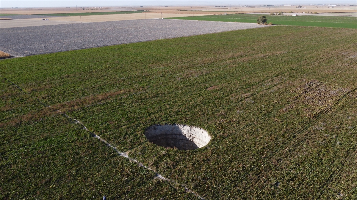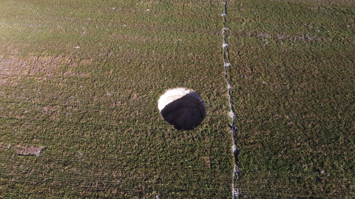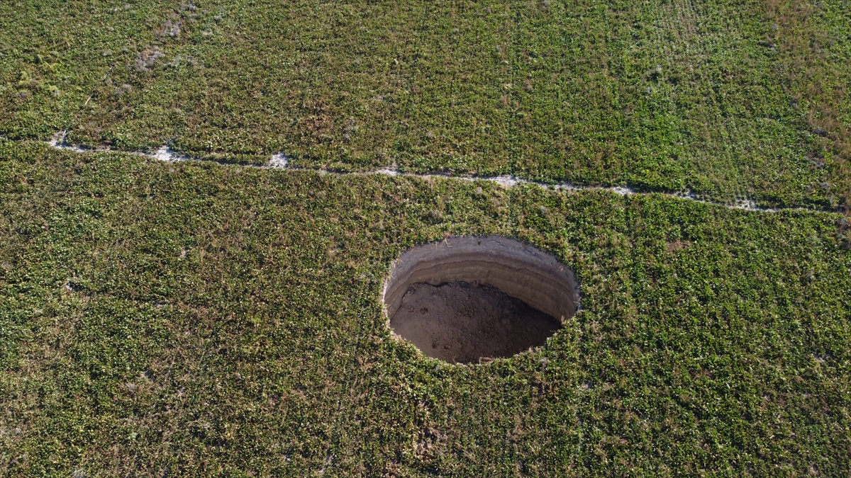 Çapı yaklaşık 27 metre, derinliği ise 12 metreyi bulan obruğu görünce tedirgin olan vatandaşlar, durumu yetkililere bildirdi.