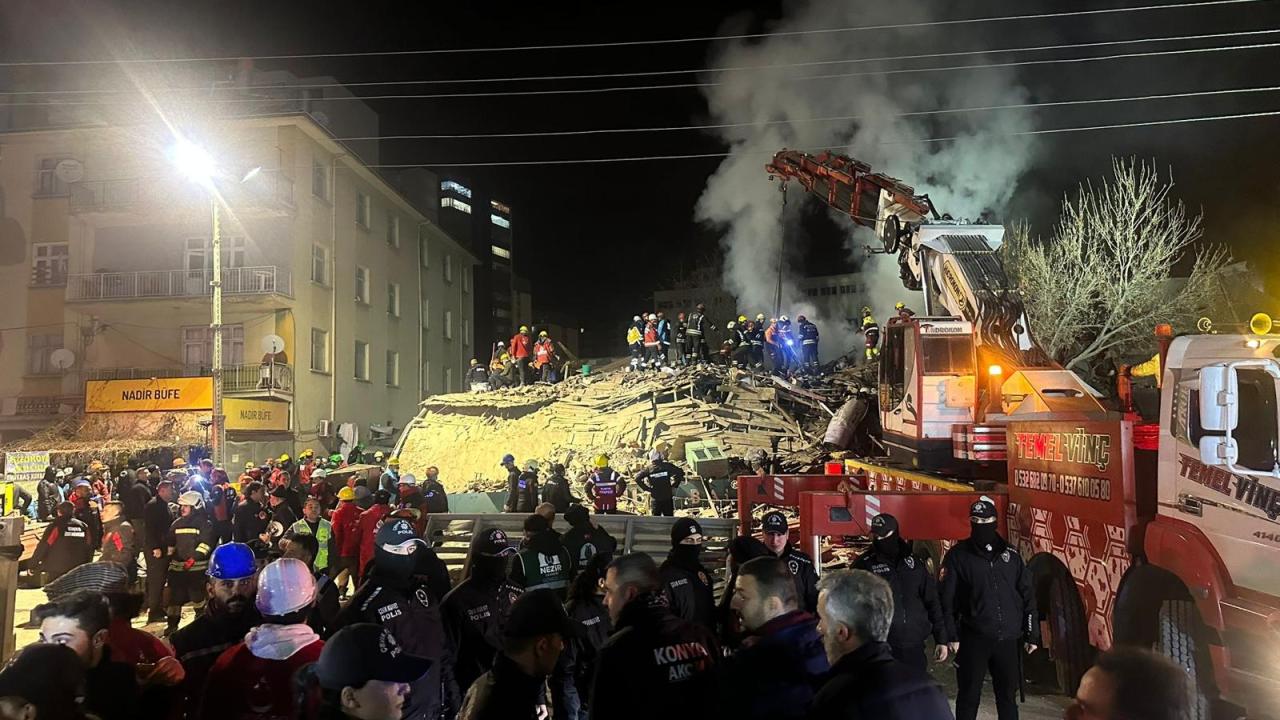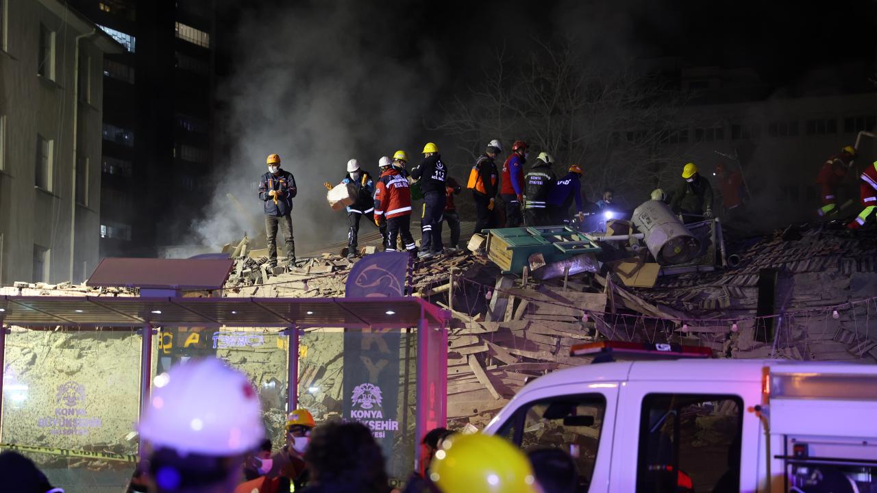 Konya'nın merkez Selçuklu ilçesinde 3 katlı bina çöktü. Ekiplerin arama kurtarma çalışmaları devam ediyor.