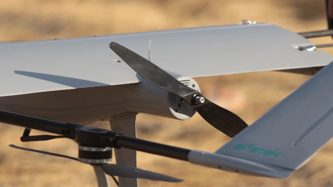 Üzerinde yüksek çözünürlüklü kamera bulunan insansız hava aracının keşif, gözetleme ve erken tespit özelliğiyle güvenlik, tarım ve haritacılık alanları ile afetlerde ve denetim faaliyetlerinde kullanılabilecek şekilde tasarlandığını ifade eden Düzgün, "Dronlarda olduğu gibi dikey kalkış sistemiyle havalanıyor. İrtifa aldıktan sonra kuyruktaki elektrikli itki motoru sayesinde uçak moduna geçiyor." dedi.