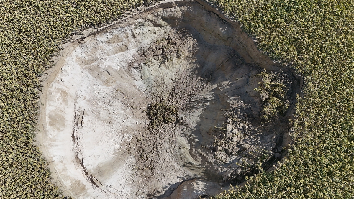 Ekmekçi, bölgede daha önce de obruklar meydana geldiğini belirterek, "Geçtiğimiz yıl da burada bir obruk oluşmuştu. 500 metre çapındaki bu bölgede tam 6 obruk var" dedi.