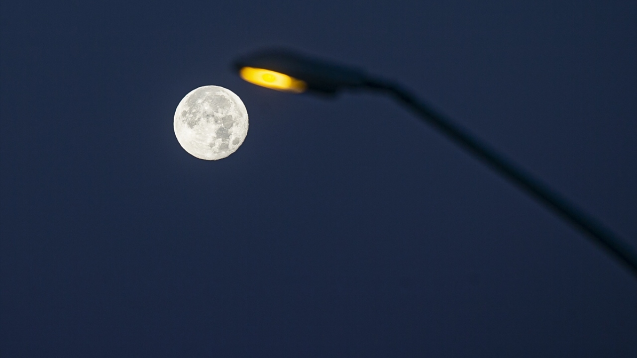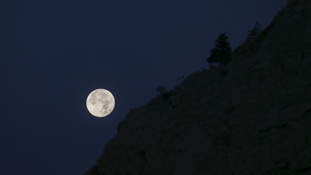 Akşam saatlerinde beliren dolunay, Konya'da güzel görüntüler oluşturdu.