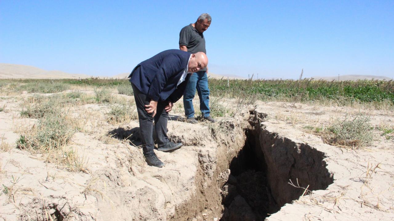 Tarla sahibi Abdurrahman Sever ise, pancar tarlama yağmurlama kurmaya geldiğimde gördüm ki yarık oluşmuş. Bende böyle bir şeyi ilk defa görüyorum. Bu durum karşısında herkes çok şaşırdık. Yeraltı sularının azalması sonucu oluştuğunu düşünüyoruz" diye konuştu.