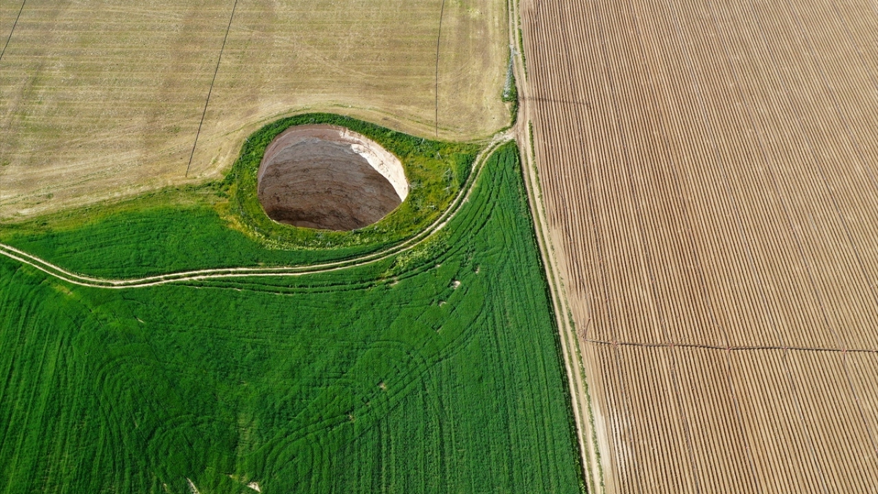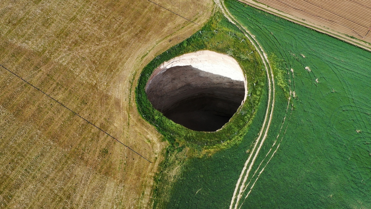 Konya`nın Karapınar ilçesine bağlı Reşadiye Mahallesi Ekmekçi mevkisinde asfalt yol üzerinde 30 Ağustos`ta 15 metre derinliğinde ve 30 metre çapında oluşan obruk, dikkatleri yine bölgeye çekti.