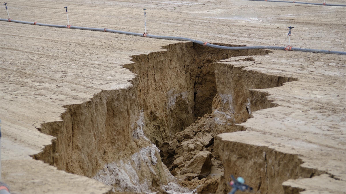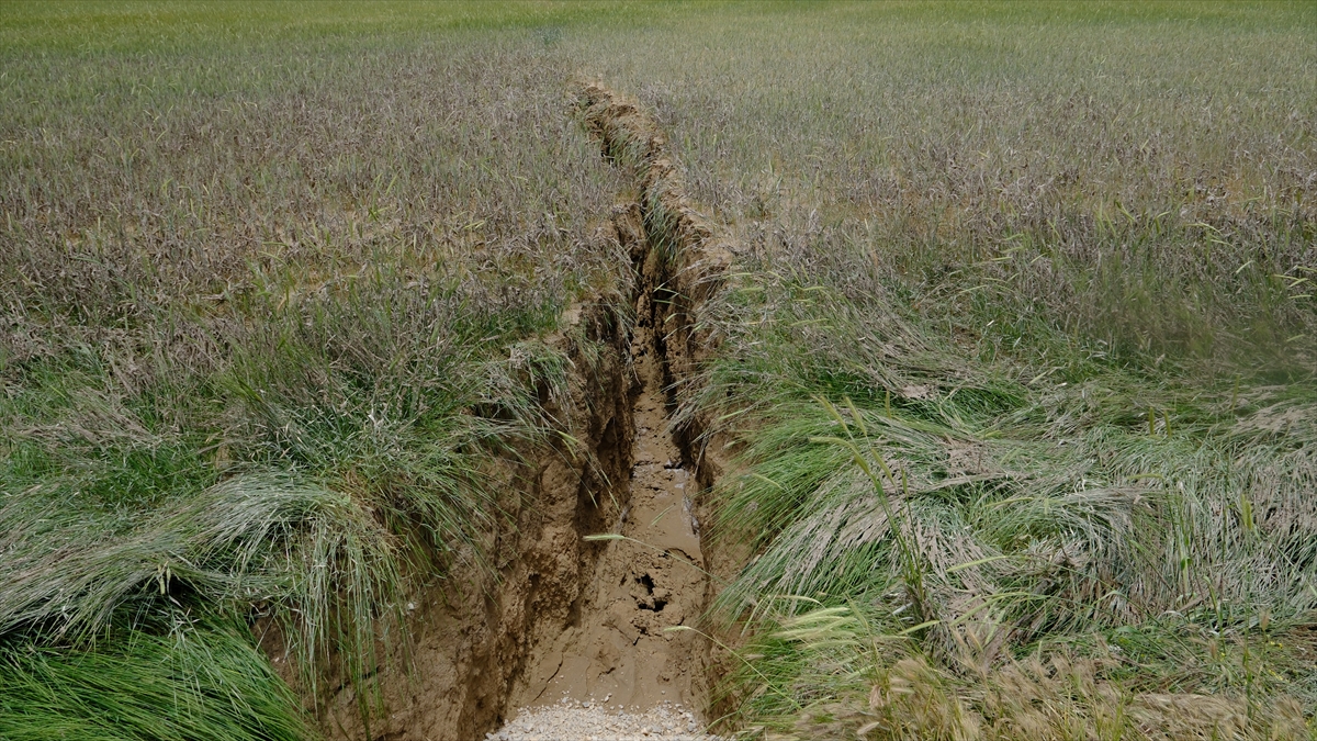 Konya'da sağanak sonrası tarım arazisinde yarık oluştu