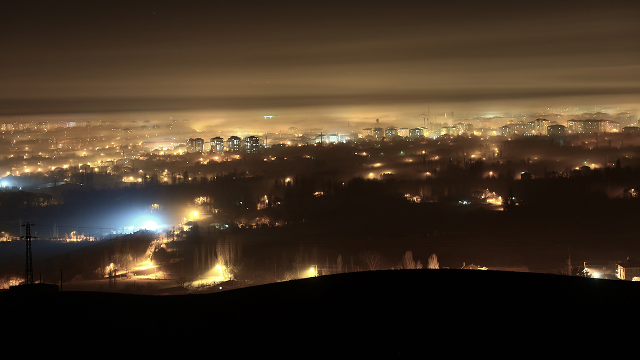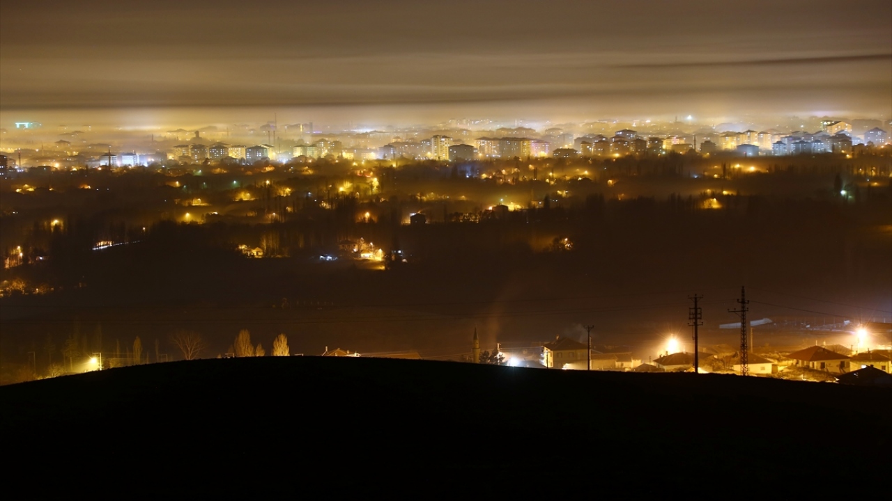 Konya'nın Ereğli İlçesi Hacımemiş Mahallesinde çeşitli vericilerin bulunduğu Göztepesi mevkinden şehrin ışıkları ve sis güzel görüntüler oluşturdu.