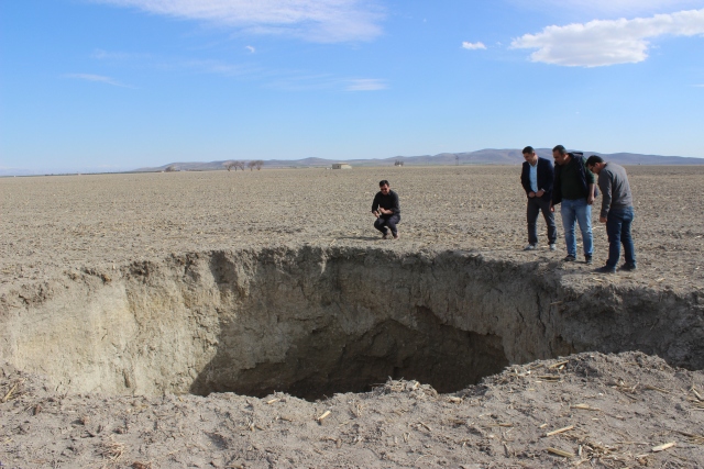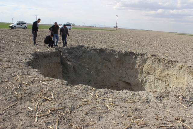 Konya'nın Karapınar ilçesinde yaklaşık 40 metre çapında, 20 metre derinliğinde obruk oluştu.