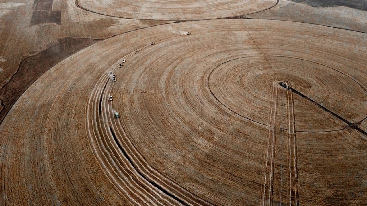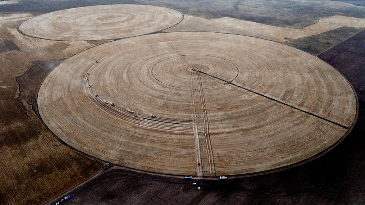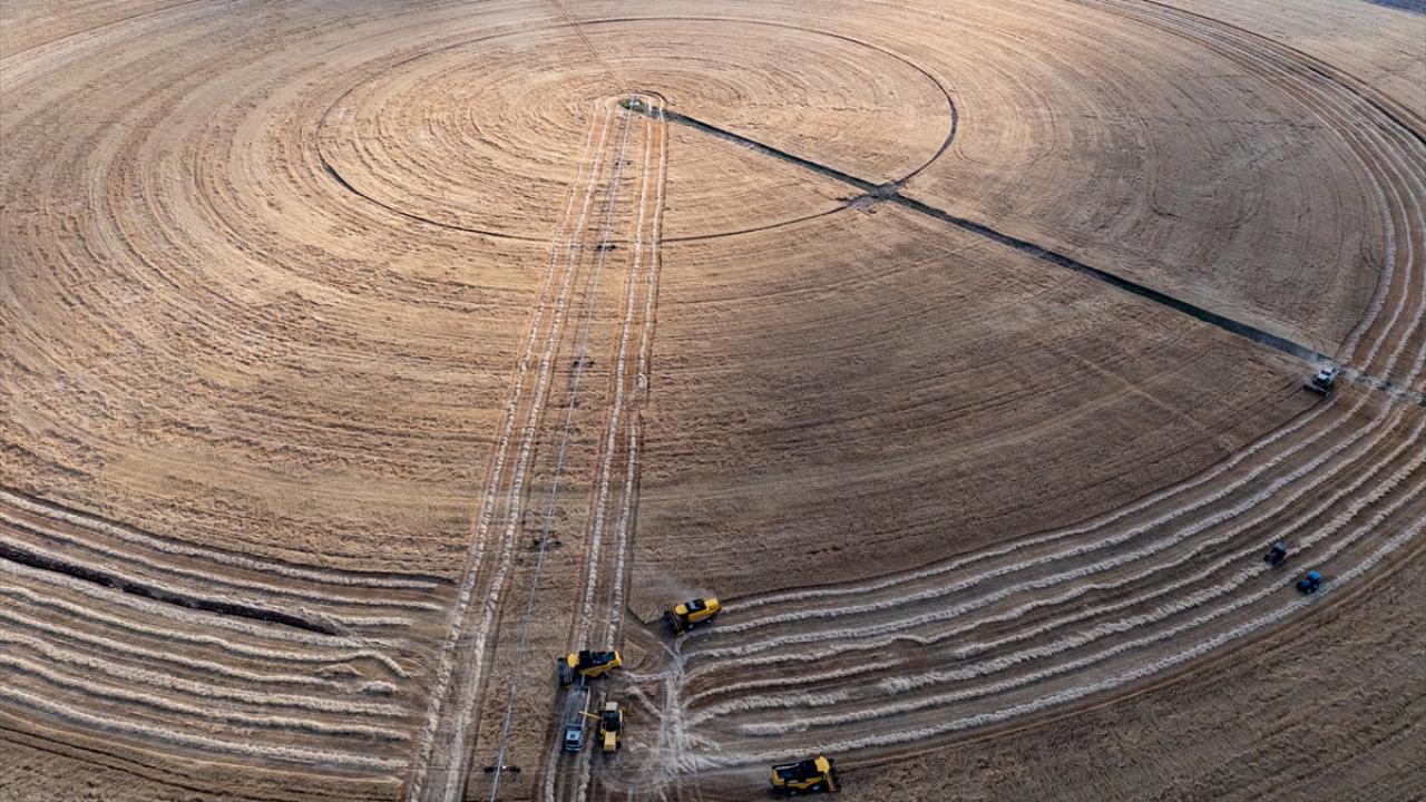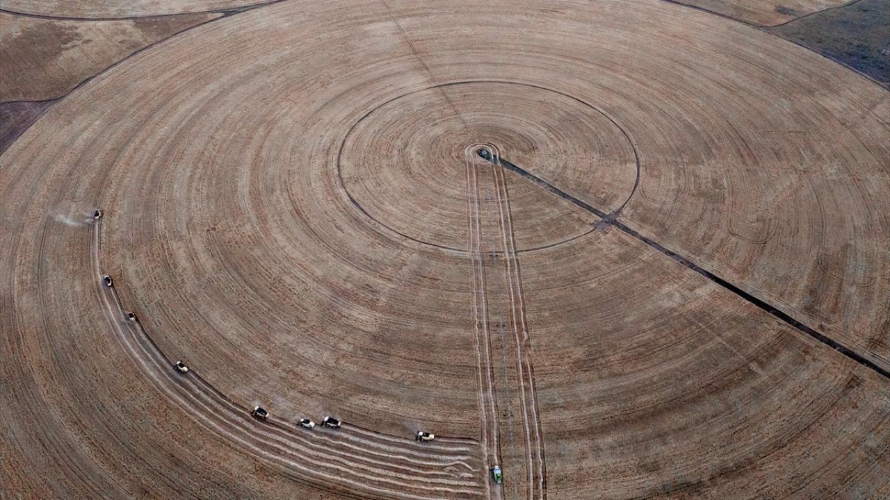 Konya'nın devasa dairesel tarlalarında hasat sezonu kapandı