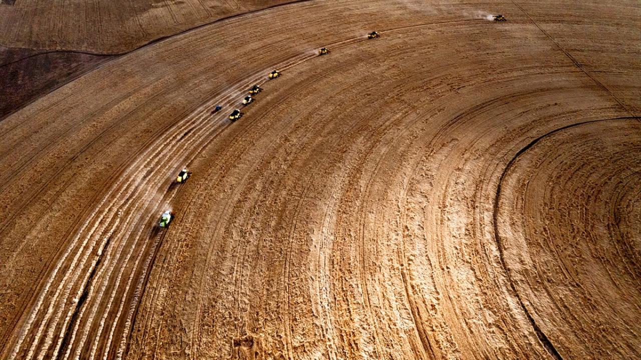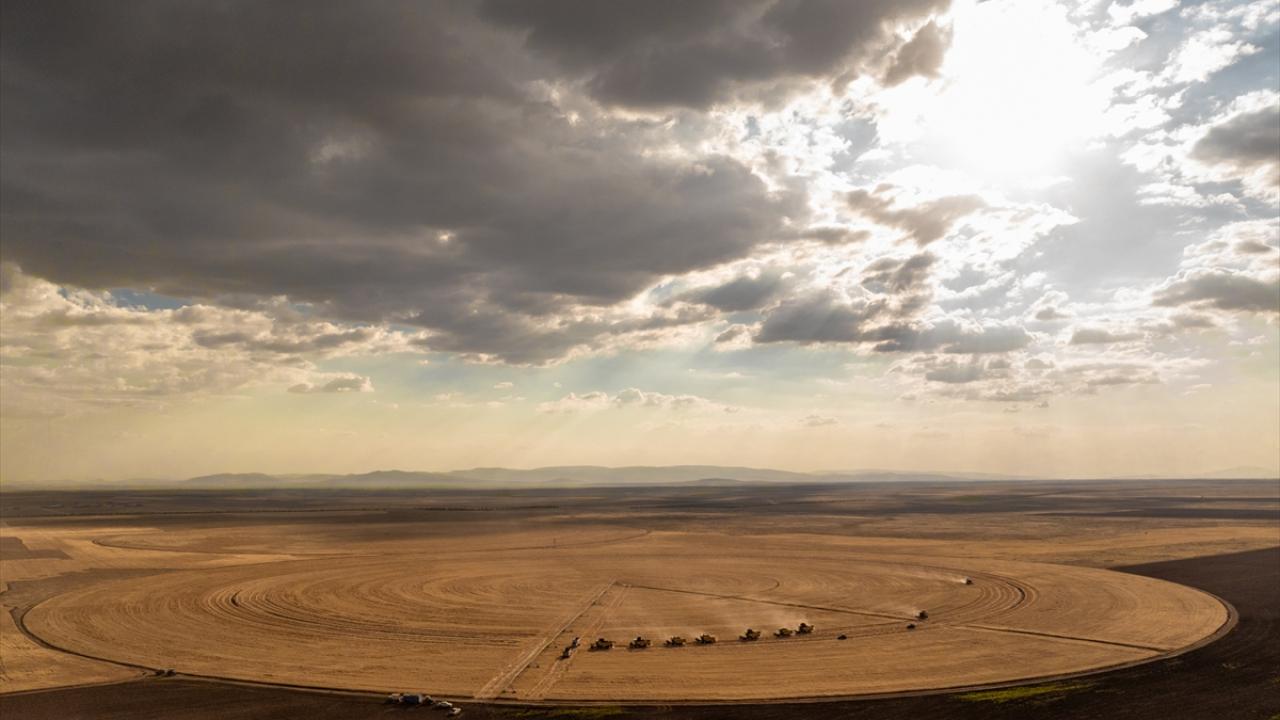 Tarlanın merkezini esas alan, yarı çap uzunluğundaki hareketli robotik sulama sistemine (center pivot) göre ekimin yapıldığı 492 dekarlık dairesel tarlalarda ise hasat, çok sayıda biçerdöverle gerçekleştirildi.