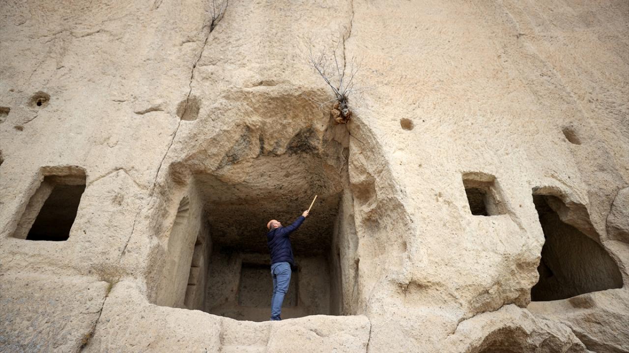 Konya'da içinde Kapadokya'daki mimarilerin benzerlerinin de bulunduğu, kaya içine yontularak yapılan Akmanastır, askeri kışlanın taşınmasının ardından görüntülendi.