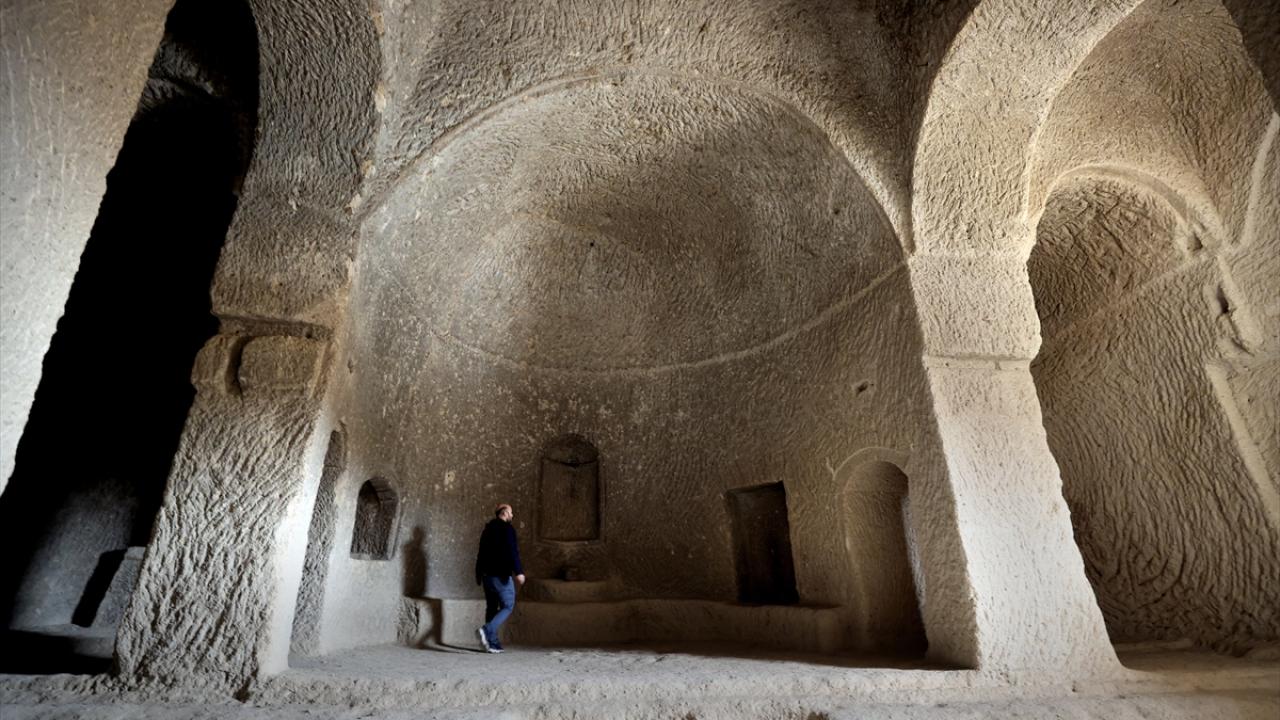 Kapadokya`daki mimari yapıların benzerlerinin de olduğu yerde askeri mühimmat deposu olarak kullanılan kaya oyma ve her biri 65 metre uzunluğundaki 14 galeri dikkati çekiyor.