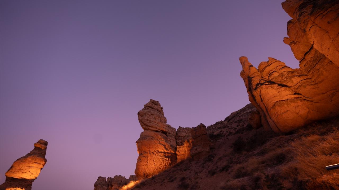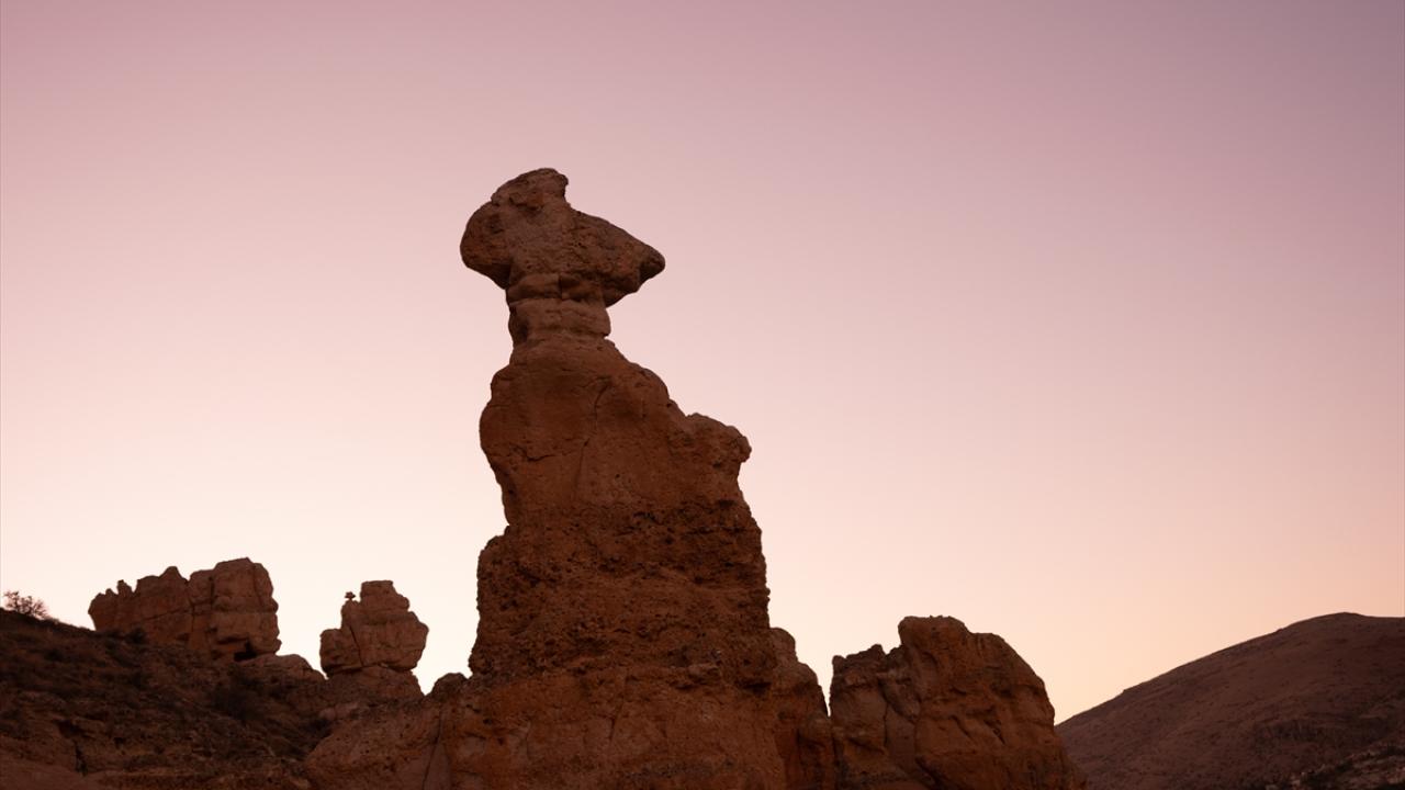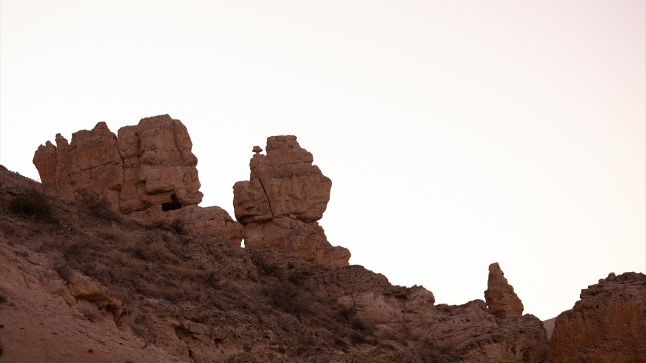 Konya’nın Meram ilçesinde, rüzgar ve su erozyonuyla oluşan Kızlar Kayası, sakin atmosferi ve farklı jeolojik yapısıyla dikkati çekiyor.