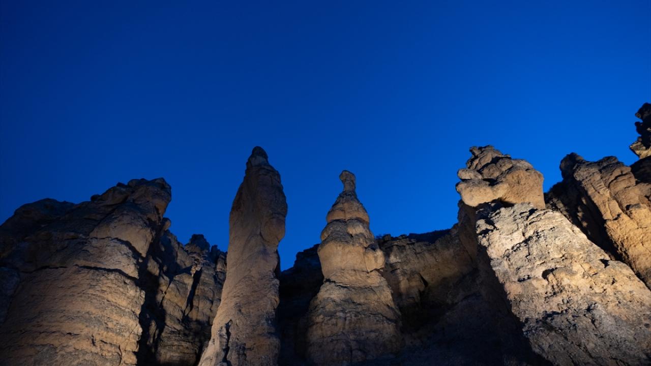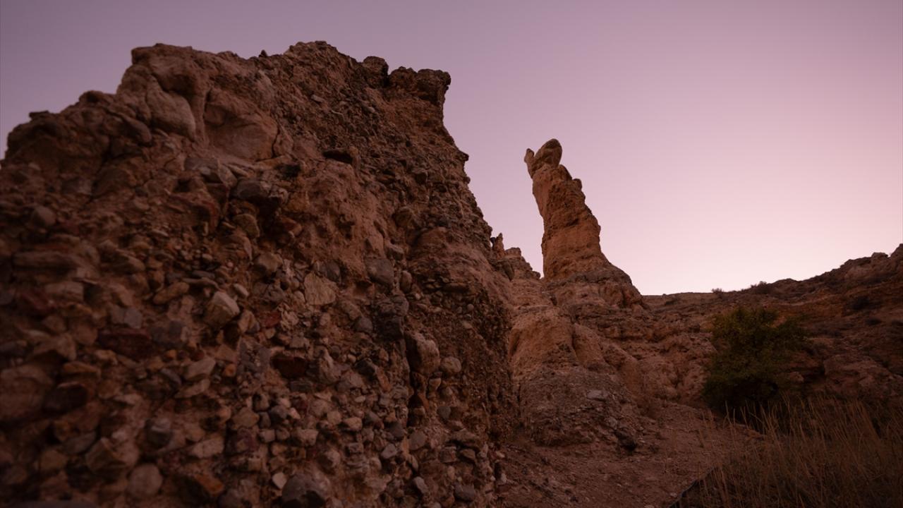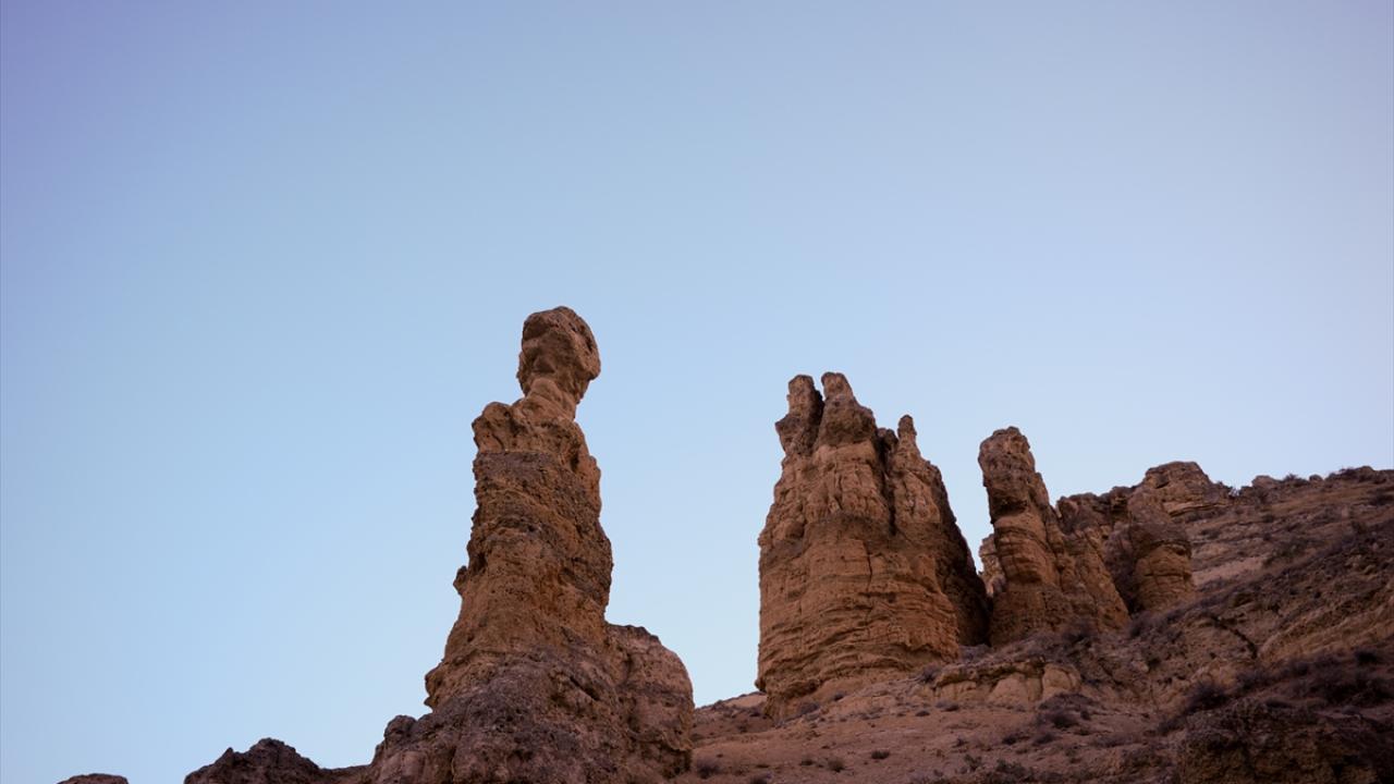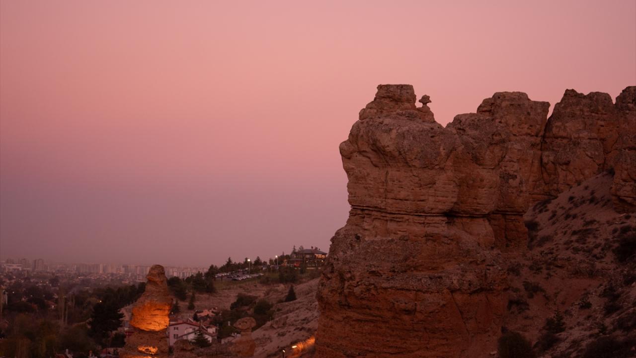 Konya’nın Meram ilçesinde, rüzgar ve su erozyonuyla oluşan Kızlar Kayası, sakin atmosferi ve farklı jeolojik yapısıyla dikkati çekiyor.