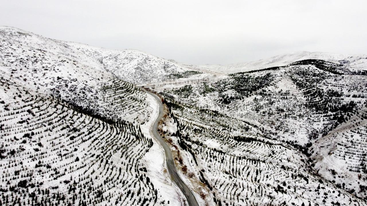 Konya'yı çevreleyen Orta Toros Dağları'nın uzantıları ve kent merkezi yakınındaki Kestel Ormanları'nda etkili olan karla birlikte beyaz örtüyle kaplandı.