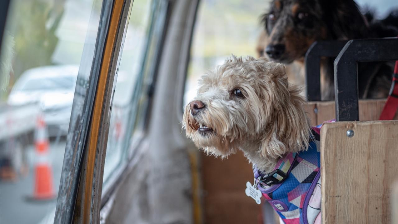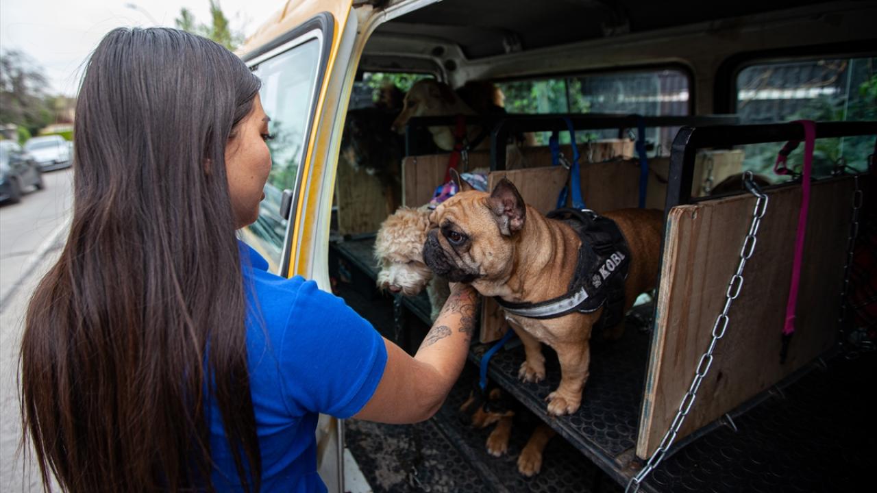 Şili'nin başkenti Santiago'daki "Dog Mates" adlı köpek bakım merkezine sahipleri tarafından gün içinde veya tatil süresince bırakılan köpekler, evlerinden özel olarak onlar için oluşturulan bir minibüsle alınıyor.