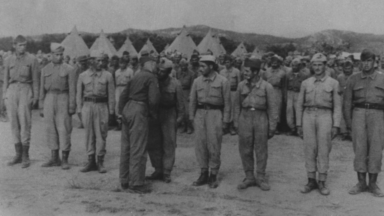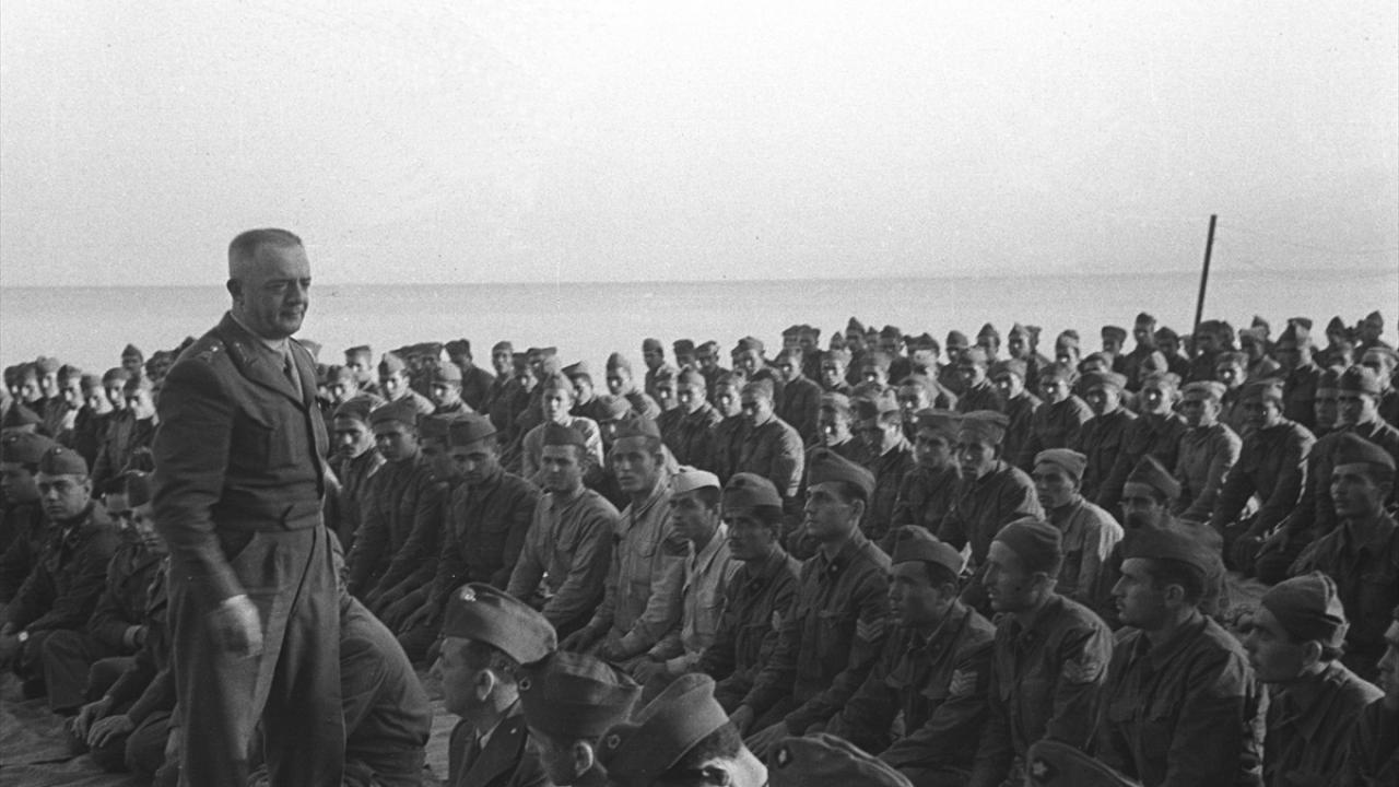 Yurda dönen askeri kafilenin bölük temsilcilerini, tugay komutanı uğurlarken. (Arşiv-27.07.1953)